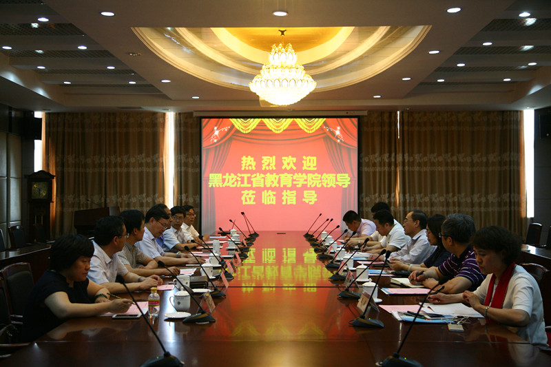 林松柏校长首先对黑龙江省教育学院一行的来访表示热烈欢迎,指出天下教院一家亲,希望两校站在新的起点上,进一步加深两校的情谊,共同开创两个学校事业更好的前景!随后林校长向客人介绍了我校的历史沿革和总体建设发展情况,并着重介绍了我校所承担的全省中小学教师远程研修、万名骨干教师培训等项目。随后山东省师训干训中心毕诗文主任、山东省中小学教师远程教育中心玄成贵主任、山东省师训干训中心刘文华副主任分别就我省“互联网+教师专业发展”工程三年规划、山东省教师教育网总体概况及山东省教育学分管理办法实施情况向客人做了详细的介绍。最后,双方就网络平台建设、学分管理办法等具体问题进行了深入的探讨并交换了意见。
