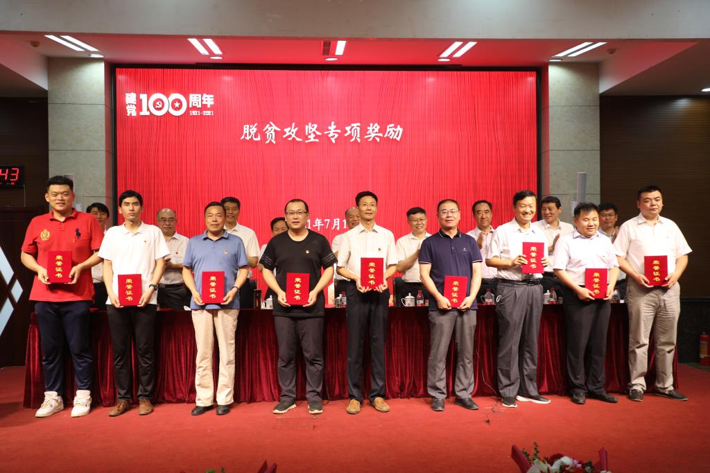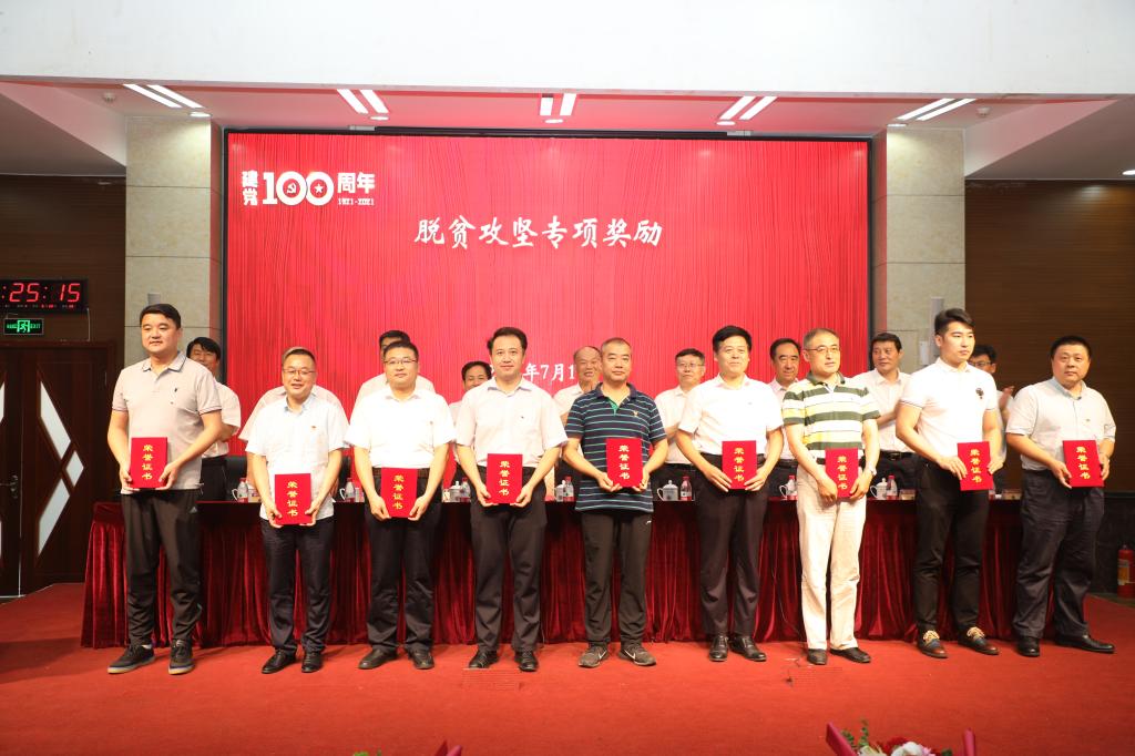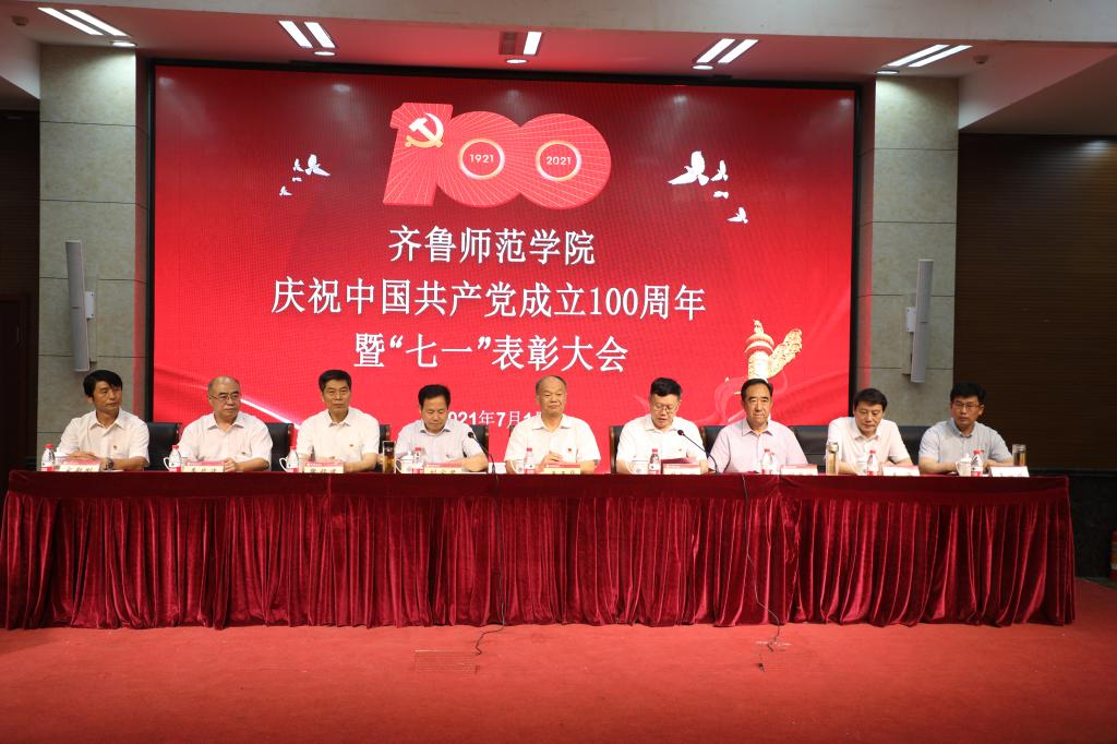 会上,党委副书记刘宝君宣读了齐鲁师范学院“光荣在党50年”纪念章颁发对象名单,省委、省委教育工委、学校党委分别表彰优秀共产党员、优秀党务工作者和先进基层党组织的决定。副校长刘德增宣读了《山东省人力资源和社会保障厅 山东省扶贫开发办公室关于给予部分事业单位工作人员和集体脱贫攻坚工作记大功奖励的决定》《中共齐鲁师范学院委员会关于脱贫攻坚专项奖励的决定》。