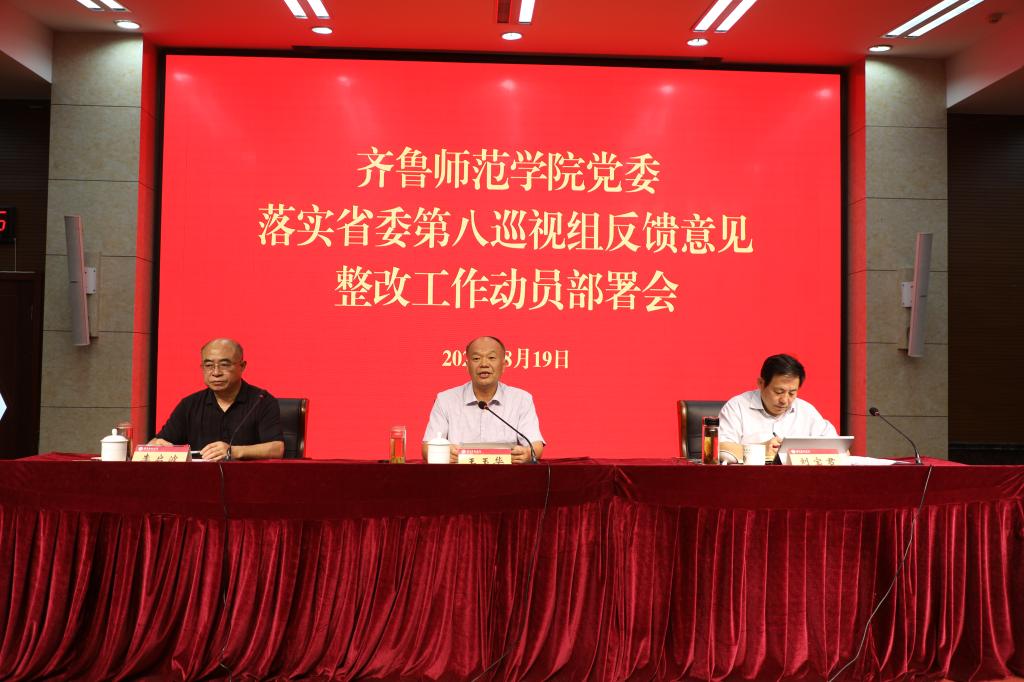 会上,刘宝君传达并详细解读了《中共齐鲁师范学院委员会关于省委巡视组反馈意见的整改方案》,就巡视整改工作进行具体部署安排,明确目标责任,指出任务措施,提出落实要求。同时,他强调,要结合学校巡视整改总体工作,一并落实好意识形态、选人用人工作专项整改方案。