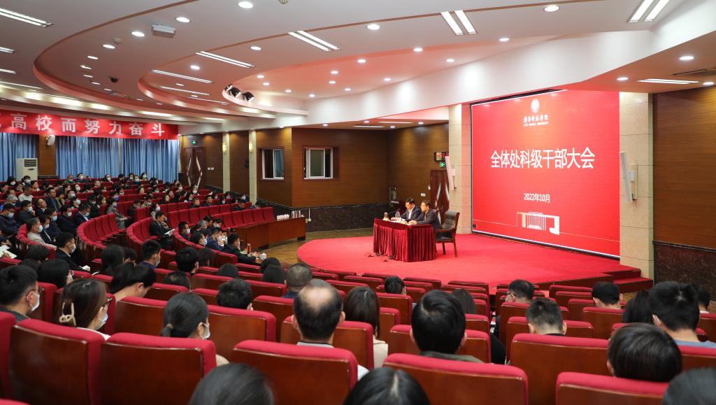 10月13日,我校召开全体处科级干部大会,全面动员和部署贯彻落实第三次党代会精神、深入推进干部制度和人事制度改革。学校党委书记林松柏出席会议并讲话,党委副书记、校长秦梦华主持大会。学校领导班子、党委委员,全体处科级干部参加。