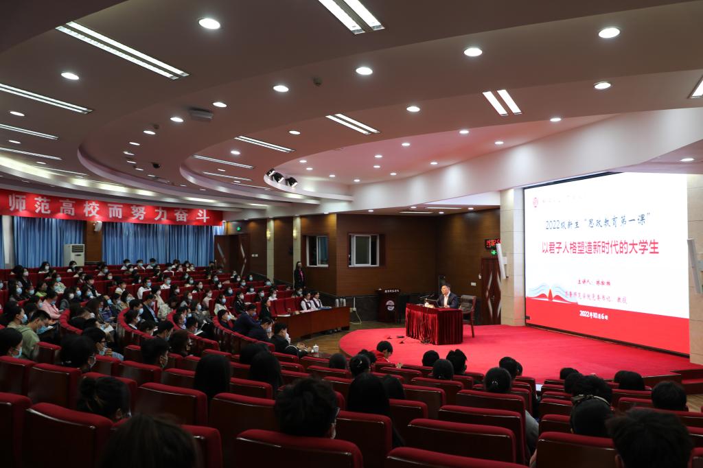在全国上下喜迎党的二十大胜利召开之际,为深入学习贯彻落实习近平新时代中国特色社会主义思想,充分发挥思政课培根铸魂、以文化人的作用,激励全校师生深入学习学校第三次党代会精神,奋力开创内涵式高质量发展新局面,10月6日,学校党委书记林松柏以“以君子人格塑造新时代的大学生”为题给2022级全体新生讲授“思政教育第一课”,诠释培育君子人格、打造育人特色的重要意义。校党委副书记赵敏主持报告会。
