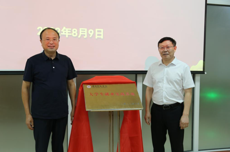 会上举行了简短而又热烈的揭牌仪式,林松柏与李新生共同为“齐鲁师范学院大学生就业实践基地”揭牌。
