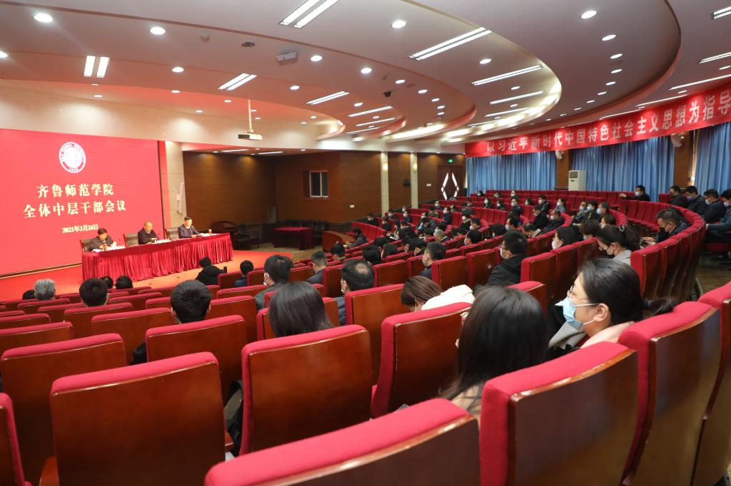 3月24日,我校在章丘校区学术报告厅召开全体中层干部会议,解读学校2022年工作要点和部门单位绩效考核办法,安排2022年校内预算。学校领导、党委委员及全体中层干部参加会议。
