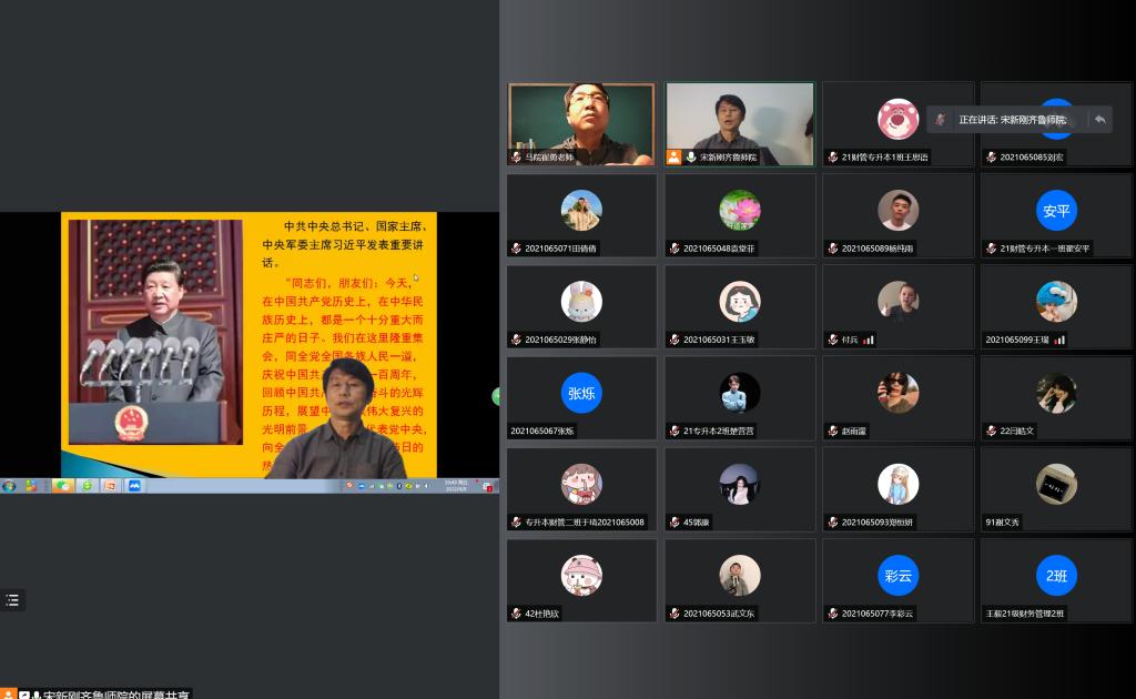 为深入贯彻落实习近平总书记在学校思想政治理论课教师座谈会上的讲话精神与中办、国办印发《关于深化新时代学校思想政治理论课改革创新的若干意见》文件要求,4月8日至10日,学校党委书记王玉华,党委副书记、校长林松柏,党委副书记刘宝君,副校长刘德增,党委委员、纪委书记、监察专员李启波,党委委员、党委组织部部长李伯伟,党委委员、党委统战部部长宋新刚深入思政课堂教学一线,以线上教学方式,面向不同学院、不同专业的学生进行专题讲授,用鲜活的事例、通俗的语言、严谨的逻辑,为同学们带来了一堂堂富有思想性、理论性和亲和力、针对性的“形势与政策”课。