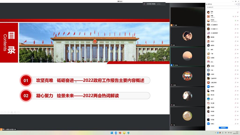 学校领导班子以习近平新时代中国特色社会主义思想为指导,围绕全国两会精神和党史学习教育,以《奋进新征程 建功新时代——学习2022全国两会精神》《文化自信:更基本、更深沉、更持久的力量——学悟习近平总书记关于中华优秀传统文化与齐鲁优秀传统文化的论述》《党的历史使命与行动价值》等主题展开教学工作。通过讲解2022政府工作报告的主要内容、解读两会热词,阐释习近平总书记对传统文化的论述,从党史视域中述说校史,引导学生增强爱校意识并进一步更好地爱党爱国爱社会主义,不断引领师院广大青年学子更加紧密地团结在以习近平同志为核心的党中央周围,增强“四个意识”、坚定“四个自信”、做到“两个维护”,号召同学们踔厉奋发、笃行不怠,为夺取全面建设社会主义现代化国家新胜利、实现中华民族伟大复兴的中国梦做出新的更大贡献。