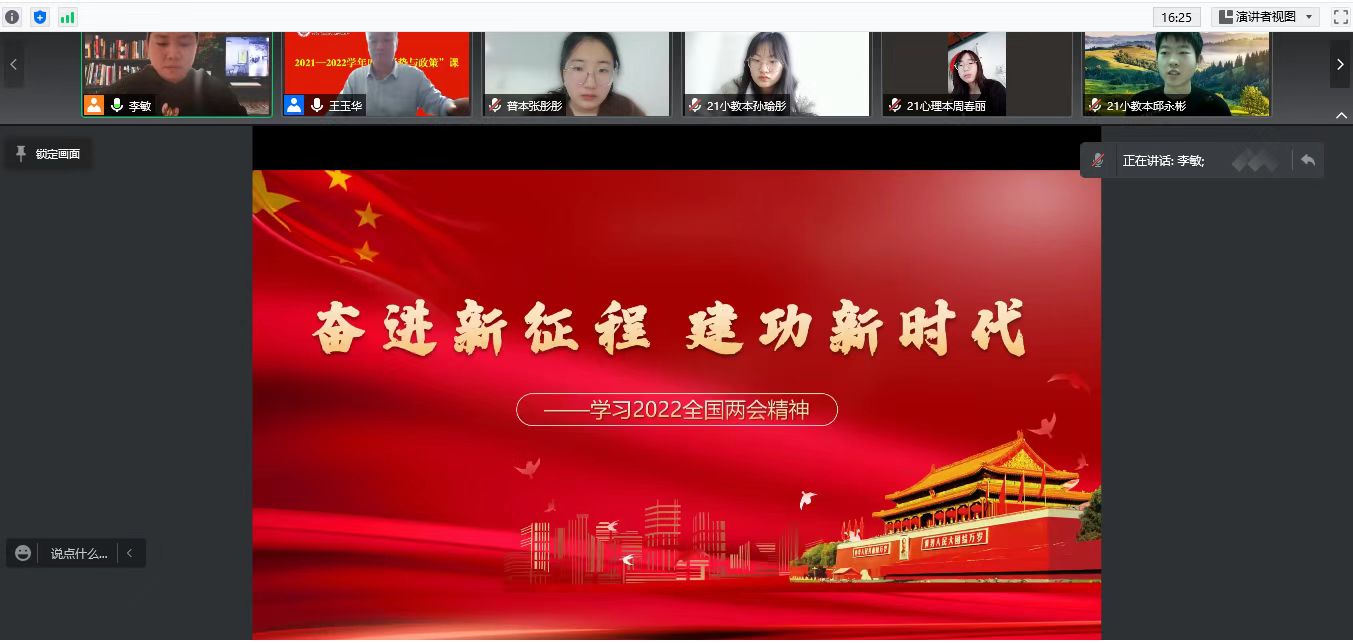 学校领导走进思政课堂,走近学生,贴近学生,得到广大青年学子的一致好评,也为上好新时代思政课起到了示范引领作用。听了王玉华书记的课,21级学前教育专业本科班吕文悦同学说:“两会与我们每个人息息相关,建设祖国也与我们每个人息息相关。我们作为祖国的一份子,应该时刻关注时政内容,听党话,跟党走。未来可期,我们仍需努力。感谢老师百忙之中给我们启发,打开格局,走出自己的舒适圈,大抵是我们目前最需要做出的行动。”还有学生在课后说,“校领导原来这么亲切博学,今天上课讲述的内容紧贴形势,消解了我们的思想困惑,更加增强了我们与国家同向同行、同频共振的信心。”更多同学表示,“特殊时期,有机会学习到‘特殊’的‘形势与政策’课,这真是一份‘特别’的‘惊喜’!”“真没想到今天的网课竟然是校领导给我们讲,谢谢校领导对我们的关怀!生活在师院,我们处处感受到温暖;战胜疫情,我们有必胜的信心。”