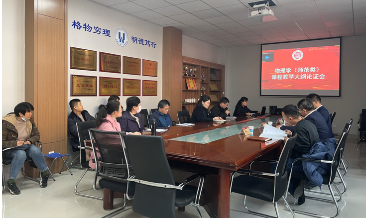 为提高学院师范认证质量,加快师范认证步伐,物理与电子工程学院于11月17日下午召开物理学(师范类)课程教学大纲论证会,党委副书记、校长林松柏应邀参加。曲阜师范大学物理工程学院副院长张英杰教授、聊城大学物理科学与信息工程学院赵汝木教授线上参会指导,我校数学学院副院长张克玉、化学化工学院副院长刘新征受邀参与论证。论证会由物理与电子工程学院院长张洁主持,物理学教研室全体教师现场聆听。