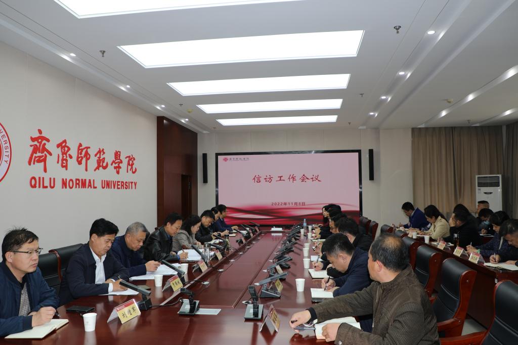 11月8日,我校在章丘校区图书馆五楼会议室召开2022年度信访工作会议。校党委副书记赵敏主持会议并讲话。学校相关部门负责人及各学院党委书记参加会议。