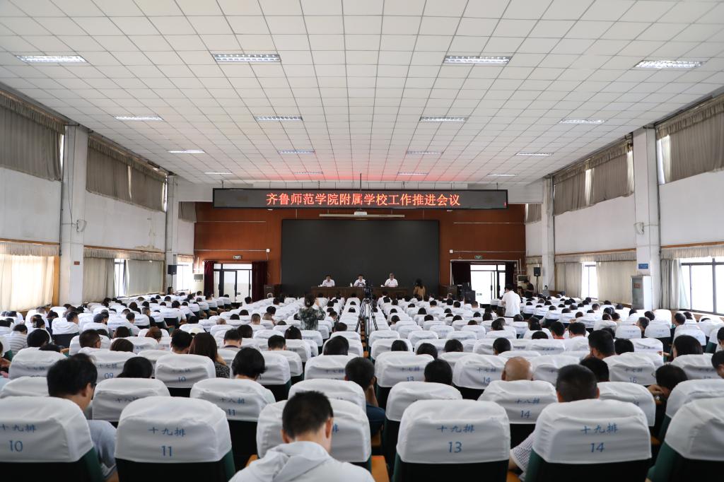 齐鲁师范学院和章丘区教育和体育局、章丘中学、道通实验学校有关部门单位负责同志参加活动。章丘中学、道通实验学校全体教职工以“线上+线下”相结合的方式参加推进会议。