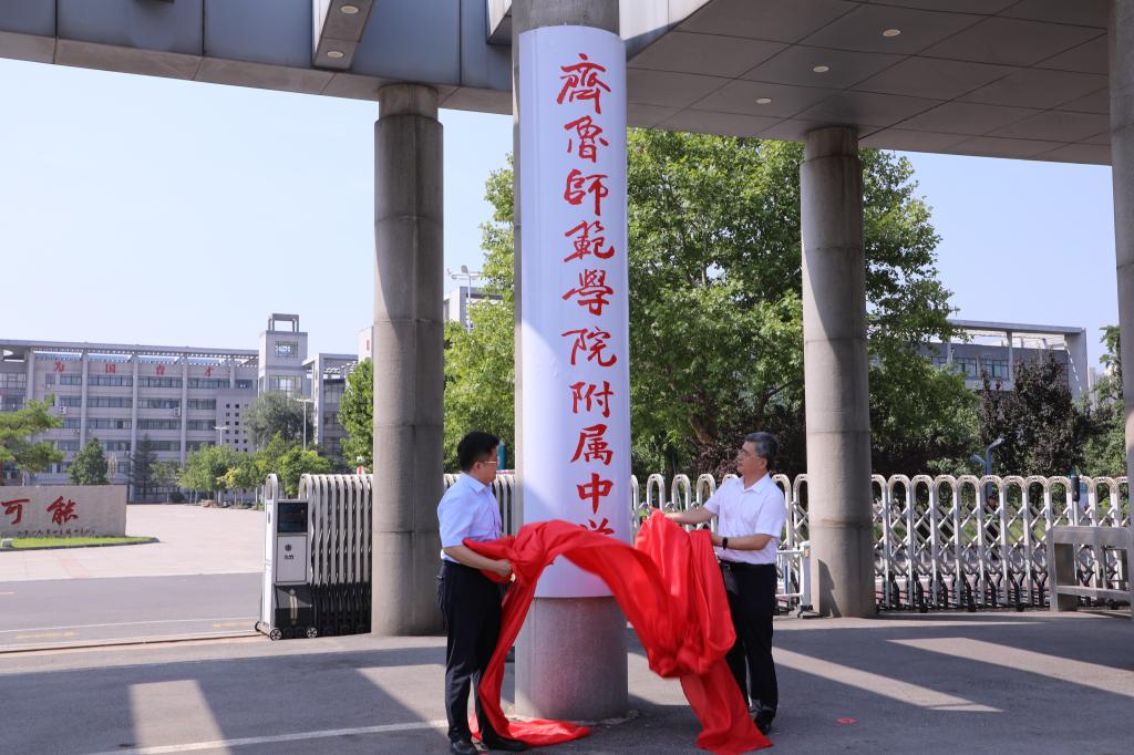 会后,举行附属学校揭牌仪式,在章丘中学北门、道通实验学校门口,丁兆方、张兆明共同为齐鲁师范学院附属中学、齐鲁师范学院附属小学揭牌。