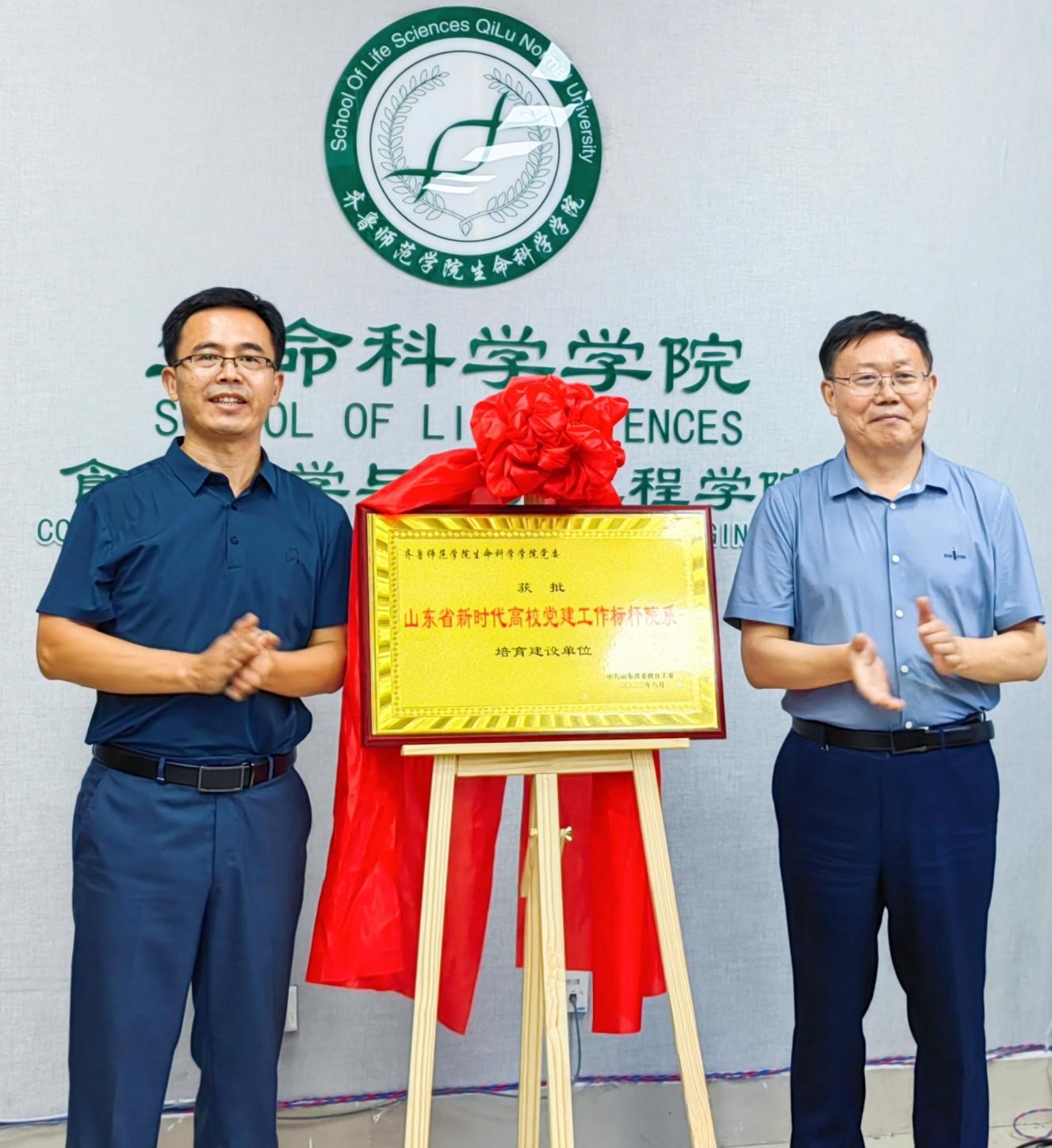 报告结束后,林松柏为生命科学学院党委“山东省第三批高校党建工作标杆院系培育创建单位”揭牌。