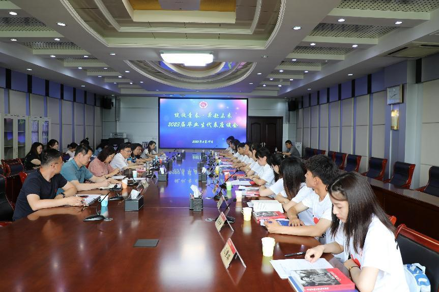 座谈会上,学生工作部部长朱礼恒介绍了学校2023届毕业生总体情况,团委书记赵旭介绍学校2023届毕业生入选西部计划情况。