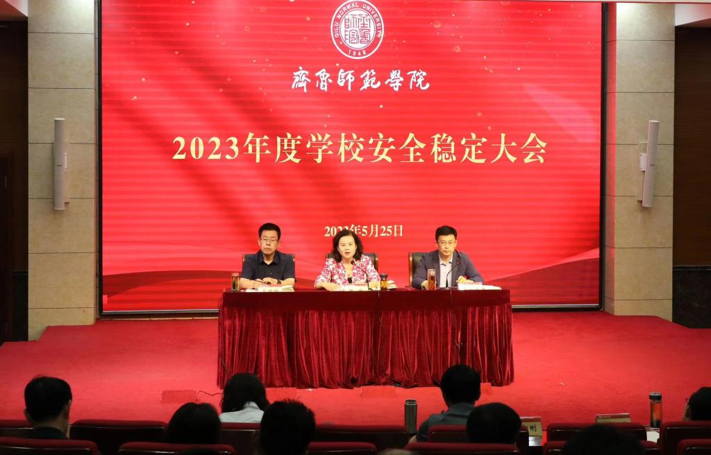 5月25日上午,齐鲁师范学院在章丘校区图书馆学术报告厅召开2023年度学校安全稳定大会。学校党委副书记赵敏出席并讲话,党委委员、纪委书记、监察专员高明辉传达有关文件精神,会议由党委委员、副校长李伯伟主持。