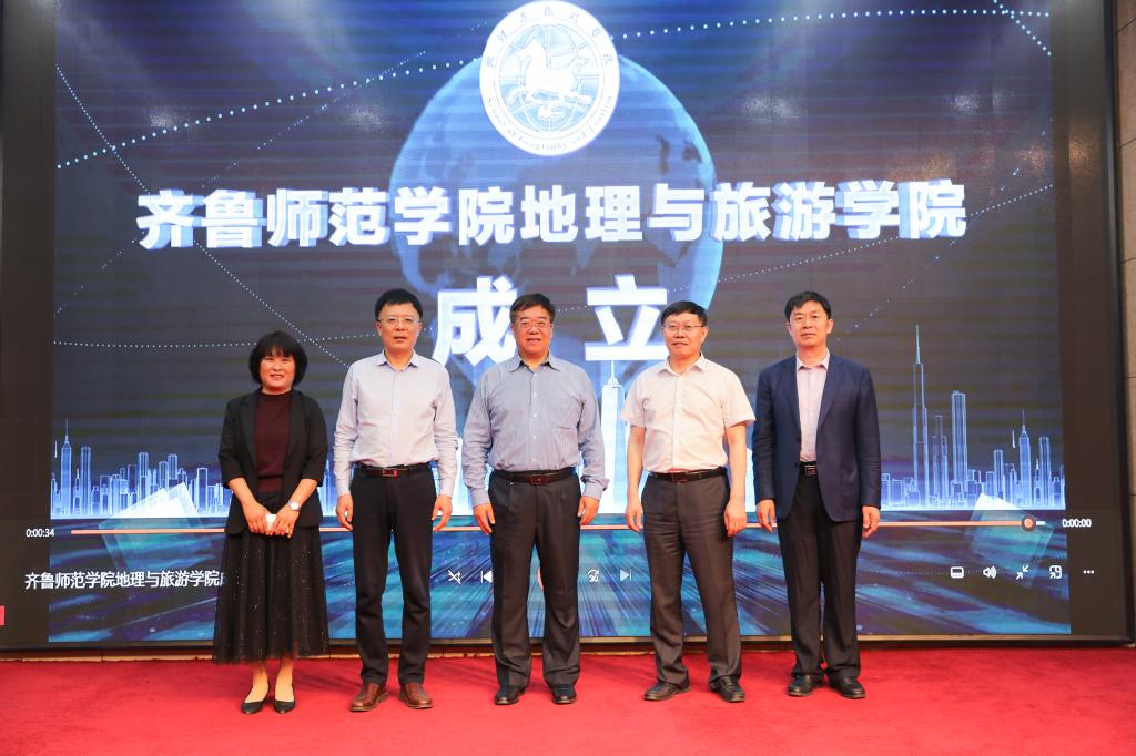 会上,举行了齐鲁师范学院地理与旅游学院成立仪式,郑新奇、林松柏、王成新、王敏共同上台为齐鲁师范学院地理与旅游学院成立揭牌。