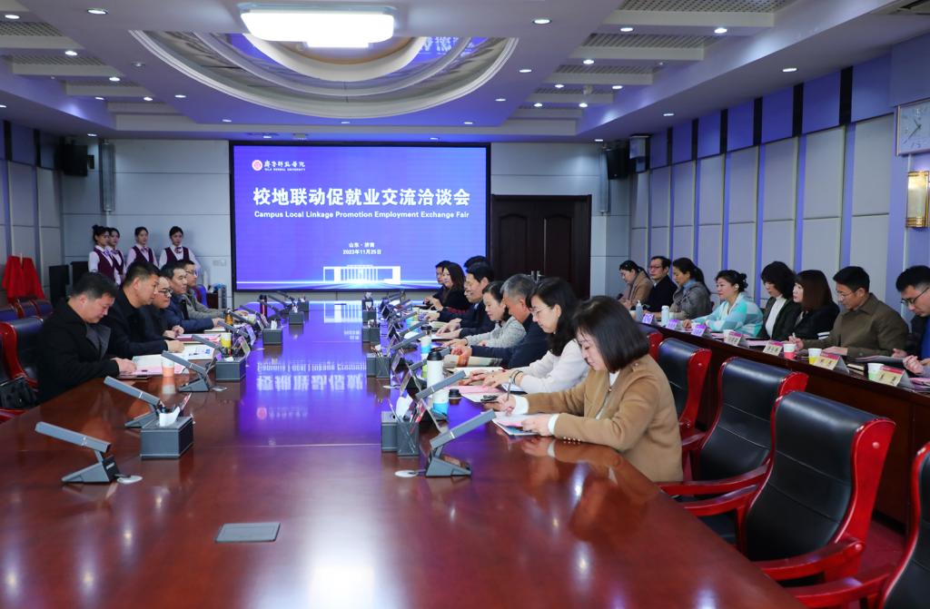 校地携手,同扶青云之志。泰安市人社局、肥城市人社局、济南市章丘区人社局、潍坊奎文区人社局带领辖区优质用人单位踊跃参加活动,现场宣传人才政策。与枣庄市人社局、泰安市人社局、肥城市人社局合作召开“校地联动促就业交流洽谈会”,通过校方人才培养及生源信息等情况的介绍、人社部门城市发展情况及地区人才政策情况介绍,进一步增进了解,通过洽谈合作、就业实践基地共建,共同搭建起校地人才供需平台,携手为毕业生就业与发展保驾护航。