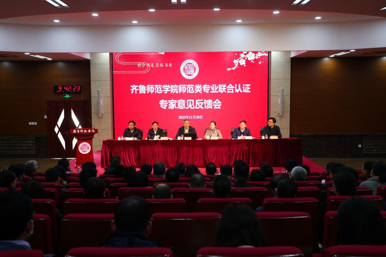钱进代表联合认证专家组对考查情况作总体反馈,对学校师范教育认证工作给予肯定。专家组一致认为,齐鲁师范学院能够根植齐鲁文化沃土,重视师范专业建设,潜心75年深耕师资培养,服务基础教育,持续深化教师教育改革,重构新师范体系,形成了浓厚的师范教育文化。学校产出导向,多维协同,推进人才培养体系重塑的特色成绩和推进“第二课堂”活动课程化建设,助力学生全面发展的特色实践给专家组留下了深刻印象。各专业认证专家组组长分别围绕考查专业特色,基于反向设计、正向施工、持续改进的达标情况,查证询证过程中的问题及改进三个方面,肯定了各专业取得的成绩;指出了各专业在课程体系的合理性评价机制、课程目标、培养目标、毕业要求的达成评价机制,教育数字化转型、教学质量保障及持续改进落实机制,教育实践教学实施与管理等方面的问题与不足;提出了切实可行的改进建议,为学校教师教育改革和师范专业的进一步发展指明了方向。