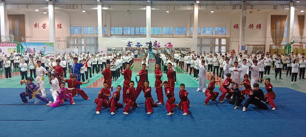 考察团一行首先参观了武术教育中心开展武术相关工作的展示。在体育馆,考察团一行观看了通背拳、八段锦等团体表演项目以及集体棍(地躺拳)童子功、象形拳(猴拳,虎拳,螳螂拳,蛇拳)、十八般兵器(集体刀、集体盾牌刀、空手夺枪,刀,枪,剑,棍)等传统武术展演综合项目展示。