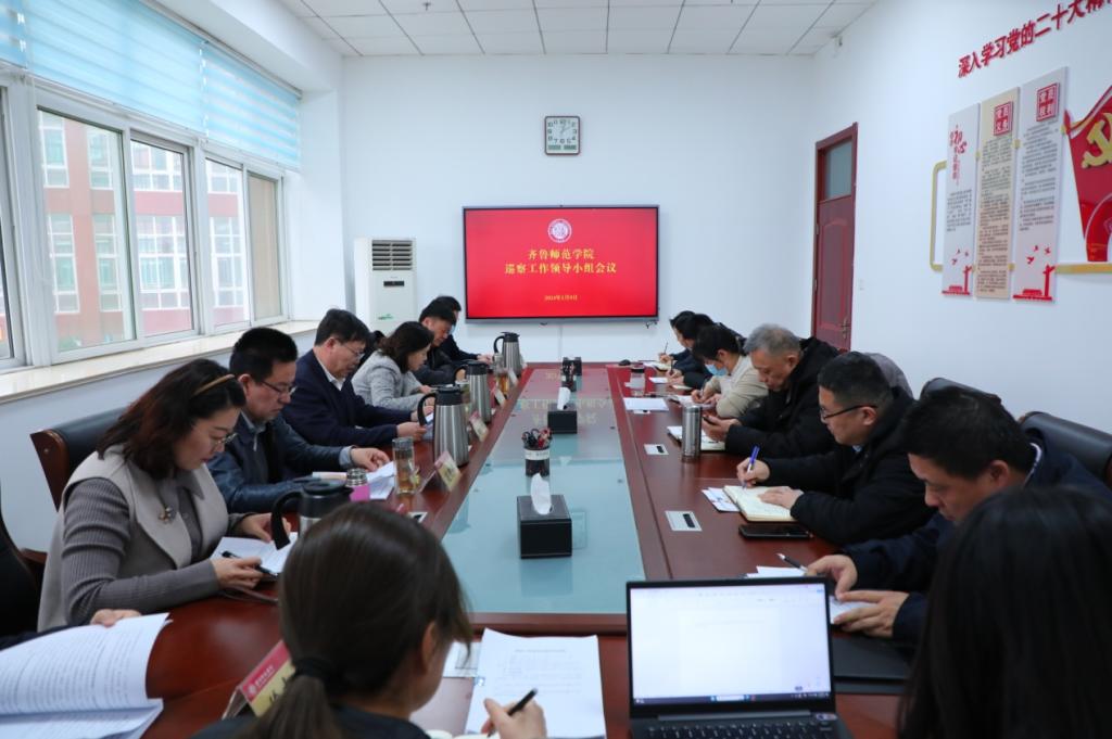 1月9日下午,齐鲁师范学院在章丘校区第三会议室召开巡察工作领导小组会议,听取第一轮校内巡察工作情况汇报,安排部署相关工作。党委书记、巡察工作领导小组组长林松柏主持会议并讲话。党委副书记、巡察工作领导小组副组长赵敏,党委委员、纪委书记、监察专员、巡察工作领导小组副组长高明辉出席会议。