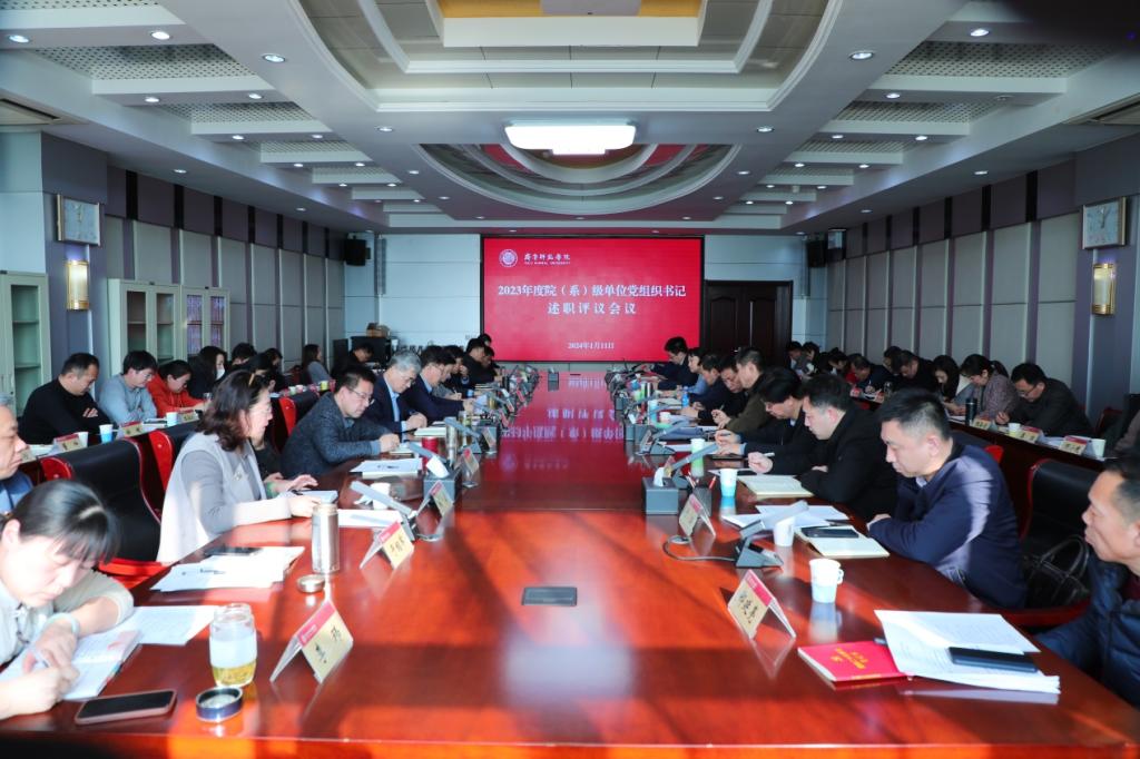 2023年度院(系)级单位党组织书记履行全面从严治党主体责任和抓基层党建工作述职评议工作采取现场述职和书面述职相结合方式进行。会上,离退休干部党委、马克思主义学院党委等18个党委(党总支)书记分别进行了现场述职。林松柏逐一进行点评,肯定了成绩、点明了问题,并提出了改进意见。