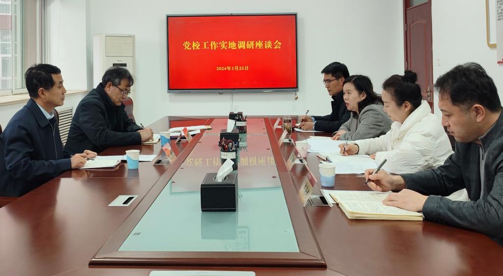 近日,省委党校(山东行政学院)一级调研员陈帆一行2人到学校进行党校建设专题调研。党委副书记赵敏主持座谈会并讲话,学校有关人员参加座谈会。