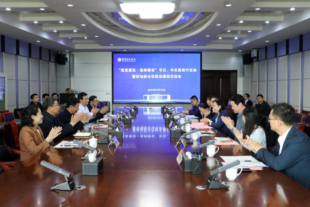 4月13日,肥城市“登高望远·选择泰安”书记、市长高校行活动暨校地联合促就业交流座谈会在齐鲁师范学院举办,肥城市政府党组成员、副市长孙栋一行到校洽谈合作。学校党委副书记赵敏出席活动并致辞,活动由学生工作部(处)部长朱礼恒主持。