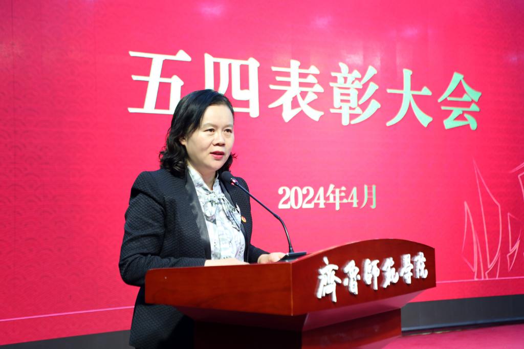 为深入学习贯彻习近平总书记在同团中央新一届领导班子集体谈话时的重要讲话精神,赓续红色血脉,彰显青年担当,充分激发广大团组织和团员团干部在中国式现代化建设中挺膺担当的奋进精神,4月25日,齐鲁师范学院2024年“五四”表彰大会在章丘校区第一学术报告厅举行。学校党委副书记赵敏,党委委员、党委宣传部部长孙磊出席会议。党委组织部,党委宣传部,学生工作部(处),教务处,合作发展办公室、校友工作办公室(创新创业学院)等部门负责人,各学院党委书记、副书记,团总支书记及团员青年代表共同参加会议。