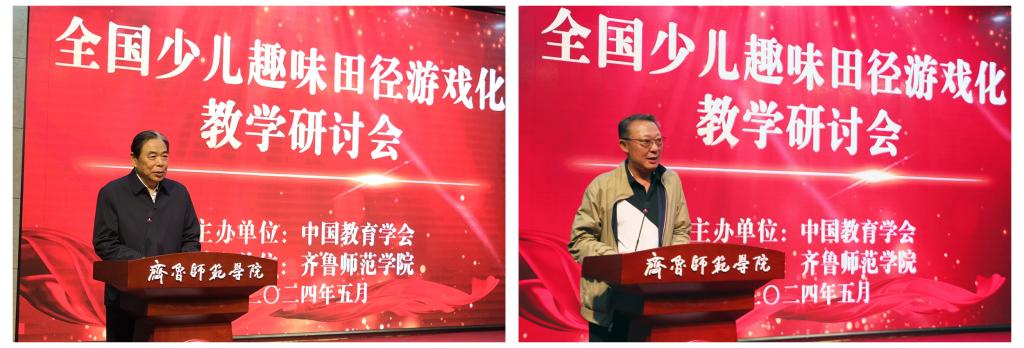 郑秀文首先致辞,他代表齐鲁师范学院全体师生员工,向所有参加此次研讨会的领导、老师们表示衷心感谢和热烈欢迎。他从历史沿革、人才培养、办学特色等方面介绍了学校的基本情况。郑秀文表示,近年来,学校深刻理解体育教育的新时代内涵和以幼儿为中心的课程建设理念,组建体育游戏教学团队,深入小学、幼儿园实践调研,不断推进专业课程建设和育人模式改革,形成具有可推广、可借鉴的幼儿体育游戏教学模式,并在济南、济宁等地多所育儿园开展体育游戏试点园建设。本次研讨会是推动少儿田径教育向趣味化、游戏化发展的重要举措,也为学校持续推进相关课程改革提供了有力借鉴。下一步,学校将继续发挥发挥面向基础教育的平台优势,对接少儿体育教育发展需求,打通整合优质教育资源,围绕少儿体育教育强化学术研究,产出一批高质量的学术成果与教育教学成果,以实际行动为落实教育优先发展战略、建设教育强国付出积极努力,作出应有贡献。