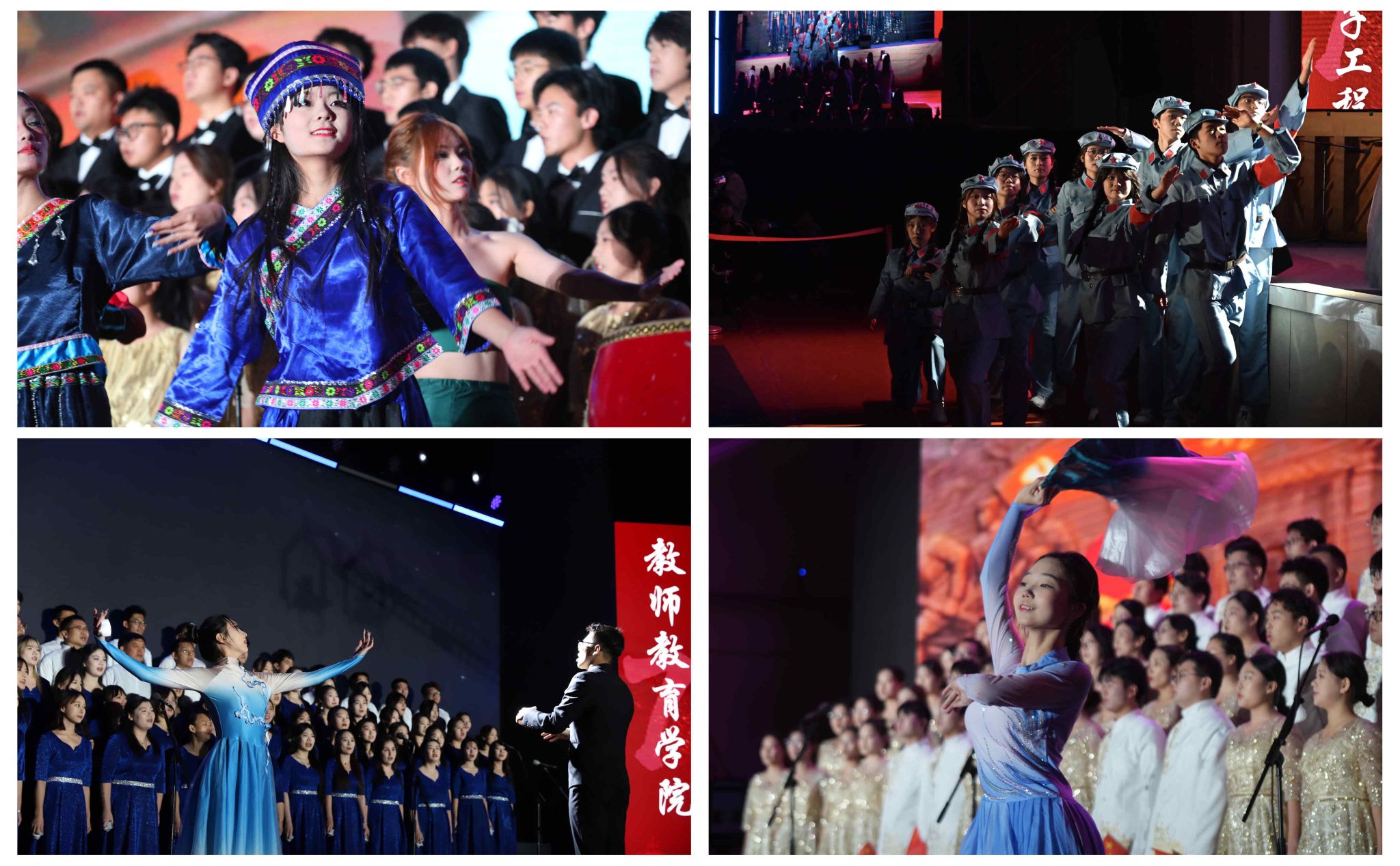 活动现场,师生们引吭高歌,激情唱响!《爱我中华》《歌唱祖国》《我爱你中国》《我的祖国》等歌曲唱出了心中对祖国的热爱;《追寻》《如愿》等歌曲致敬历史,回望了中国共产党走过的百年历程与创造的辉煌成就;《星辰大海》《真心英雄》唱出了师院青年心怀远大理想,坚定信念共筑中国梦的真挚情怀;《保卫黄河》《强军战歌》铿锵有力、朝气蓬勃,展现出师院青年斗志昂扬的精神风貌。