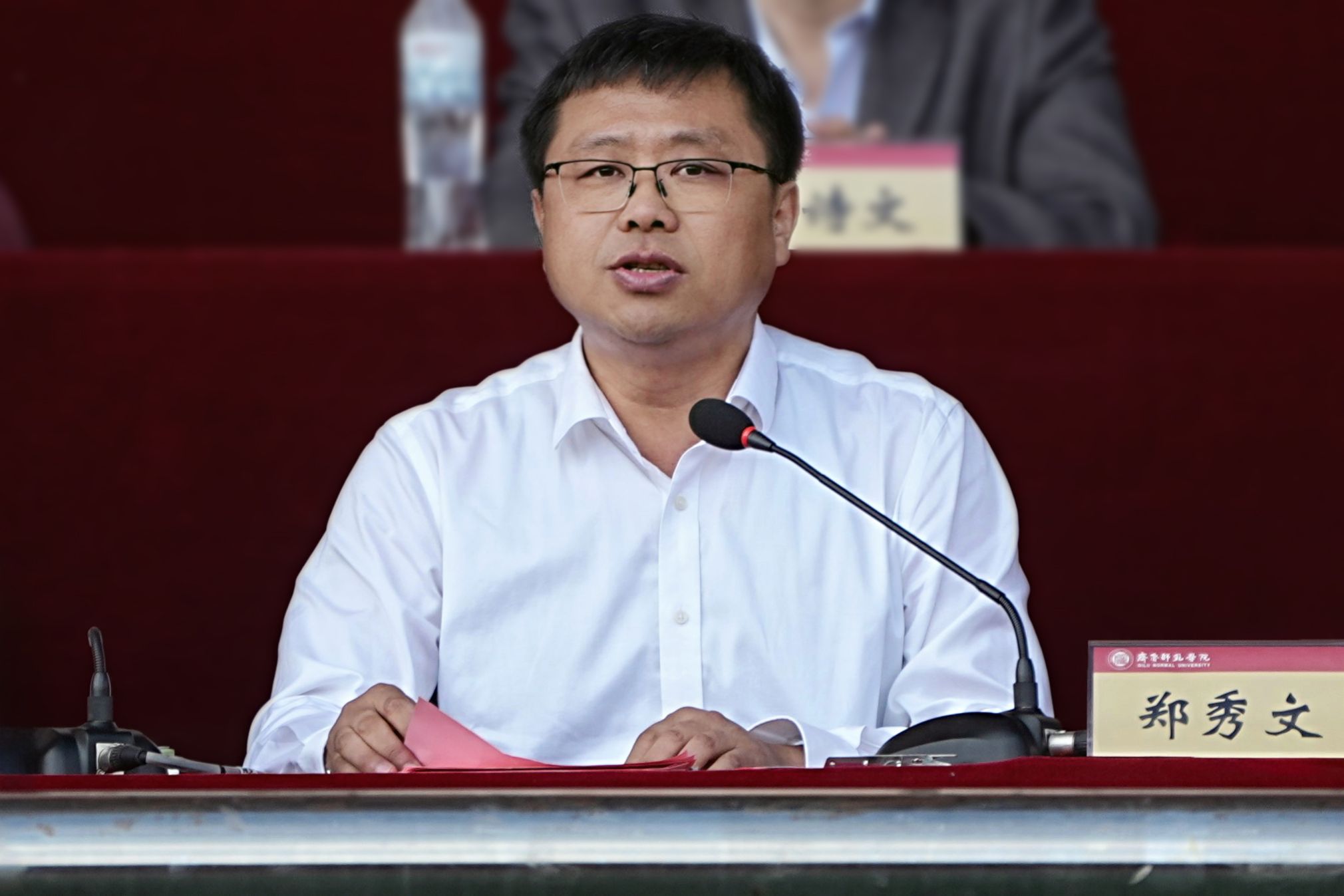 郑秀文在讲话中指出,军训是学校落实立德树人根本任务、实现强军目标根本要求、培养高素质人才的重要途径,对于塑造学生品格、增强国家意识具有不可替代的作用。齐鲁师范学院拥有光荣的军训传统,学校在加强国家安全教育和国防教育方面立场坚定、成绩显著。他对军训成果表示肯定,并对新生们提出三点期望:一是要心有大我,至诚报国。要以国家、民族利益为重,树立国家意识与民族责任感,将个人理想融入国家发展大局。二是要勤学笃行,求是创新。发扬勤奋学习、勇于实践的精神,注重理论与实践相结合,运用创新思维进行科学探索。三是要珍惜机遇,勇于挑战。希望同学们珍惜时代赋予的机遇,积极应对人生中的各种挑战,将军训精神带入学习生活,早日成长为保家卫国的栋梁之才。