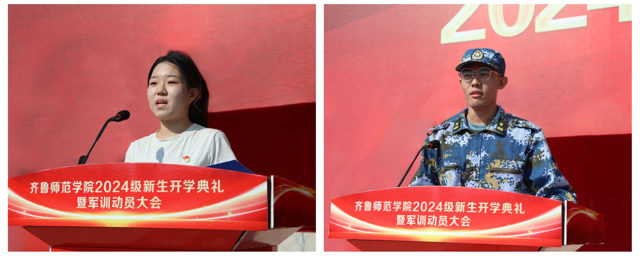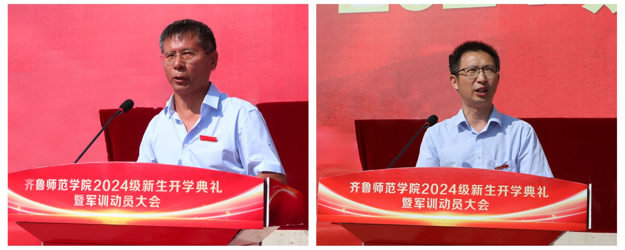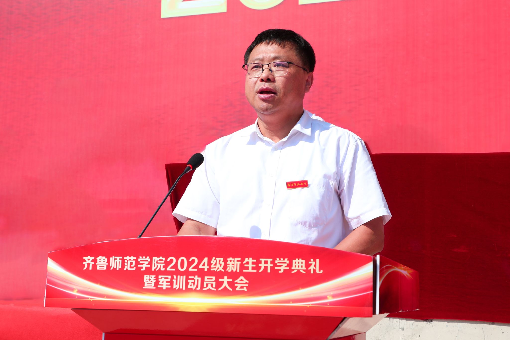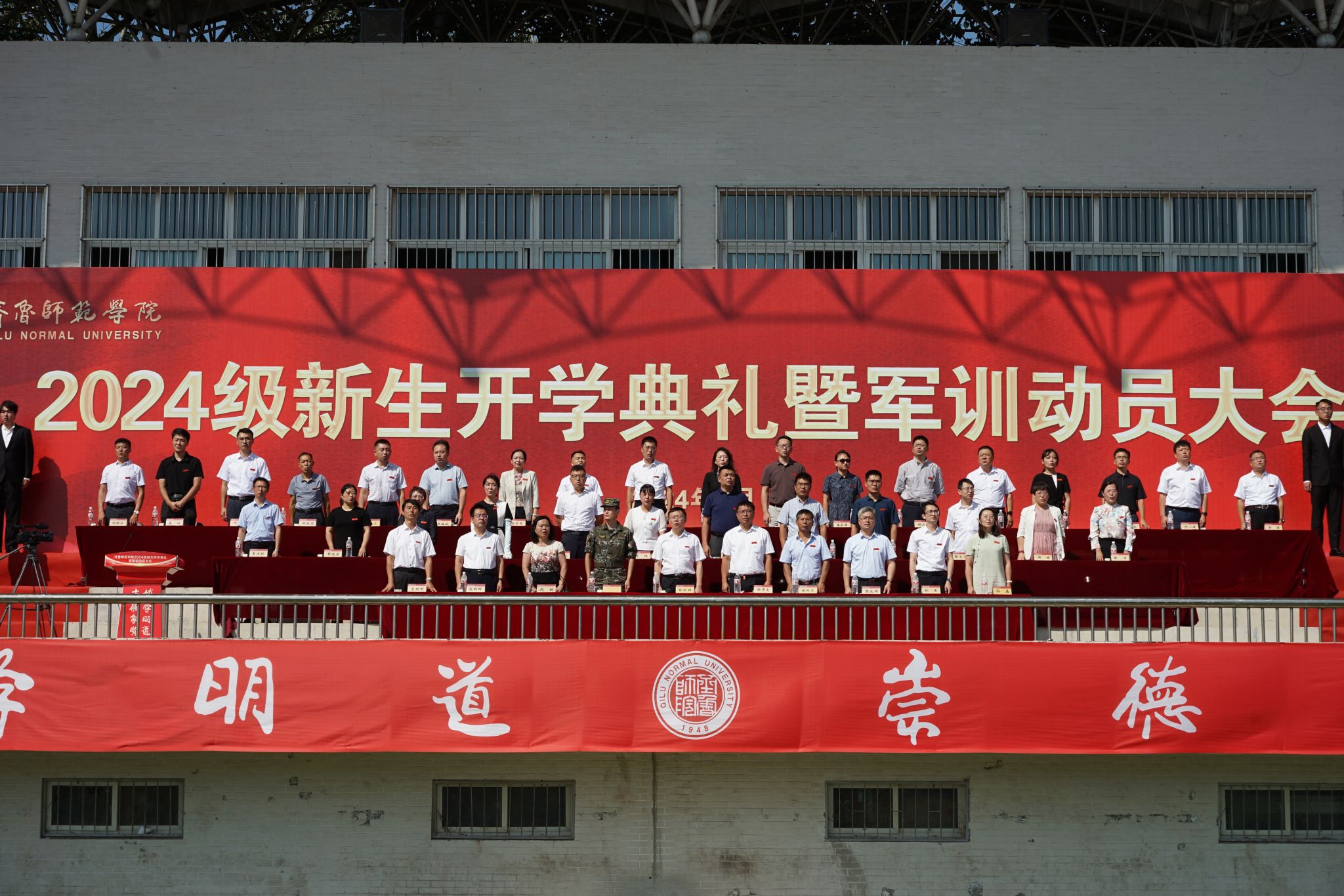 9月9日上午,齐鲁师范学院2024级新生开学典礼暨军训动员大会在章丘校区体育场举行。学校党委书记林松柏,党委副书记、校长郑秀文,党委副书记赵敏,副校长张兆明,党委委员、纪委书记、监察专员高明辉,党委委员、副校长孙正,党委委员、统战部部长宋新刚,党委委员、宣传部部长孙磊,杰出校友代表,承训部队相关人员出席典礼。典礼由赵敏主持。学校相关部门负责人,各学院院长、党委书记(副书记),学生工作部(处)、团委全体工作人员,各学院团总支书记(副书记)、辅导员,2024级全体新生共同观礼。