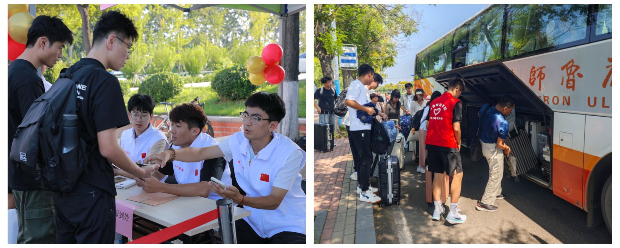 为方便学生安全便捷到校,学校分别在章丘火车站、章丘长途汽车站、章丘北站、济南火车站、济南西站、济南东站、济南长途汽车站等地点设立迎新接站点,不间断发送班车接送新生。学校加强供电、供水、供餐保障,依托迎新系统为新生提供便利。同时,校园里设置志愿者服务点、医疗服务点、学生处服务点、家长休息区等,各学院、各学生社团的学生志愿者分布在校门口、迎新点、学生公寓等地点,为新生及家长提供咨询解答、方向指引、行李搬运等服务,为新生入校提供周到服务保障。各类充满创意的宣传栏、展板、条幅在校园随处可见,营造了浓厚的君子文化育人氛围。