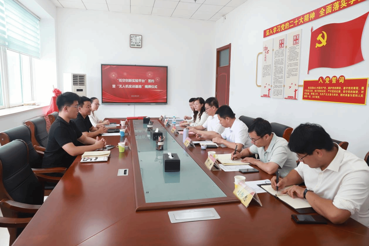 步云航空科技财务总监杜君英、销售经理马学明,物理与电子工程学院副院长刘萌、实验中心主任贾长洪参加会议。