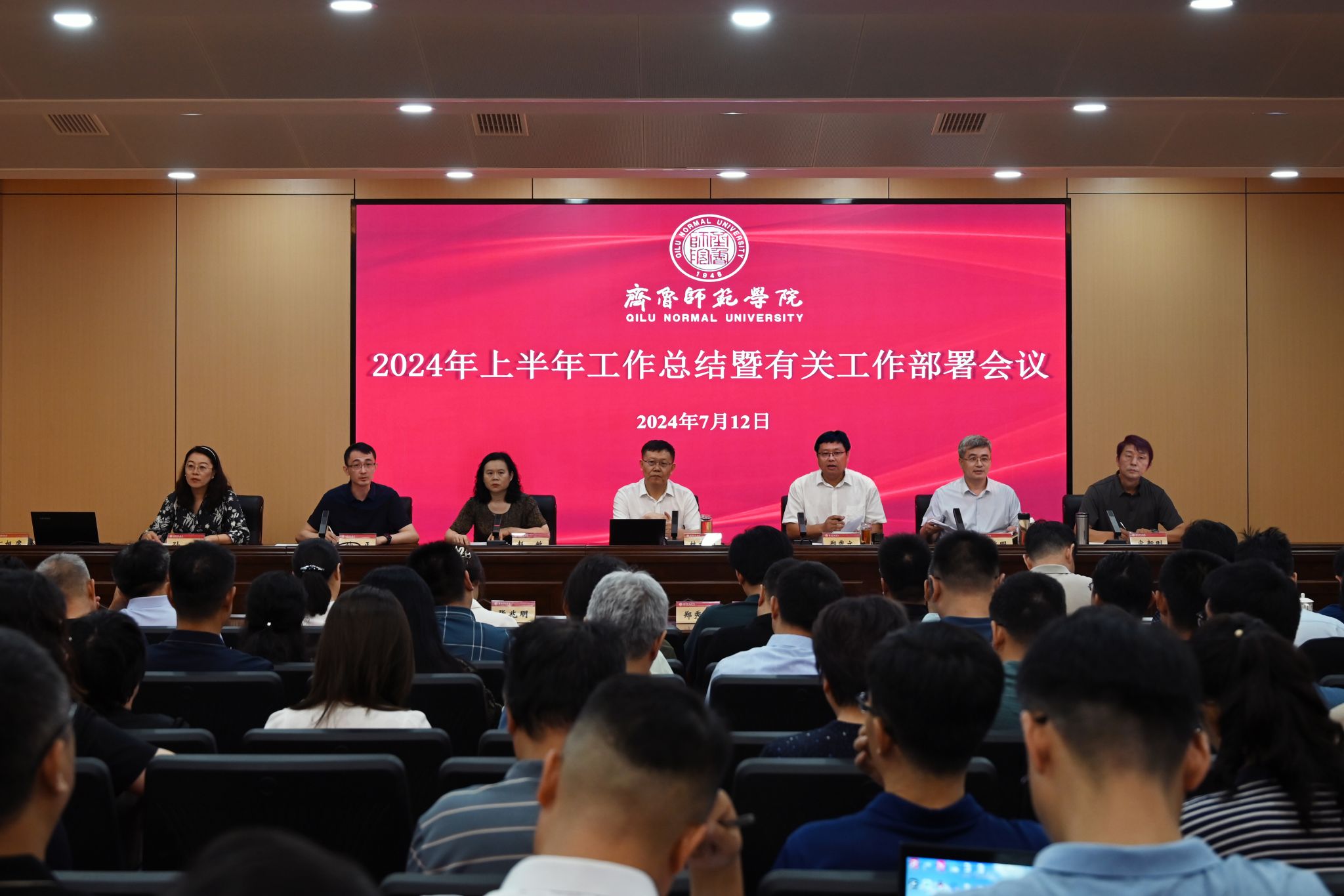7月12日上午,学校在章丘校区第二学术报告厅召开上半年工作总结部署暨审核评估调度推进与再动员会议。学校党委书记林松柏讲话,学校领导班子成员出席会议。会议由党委副书记赵敏主持。
