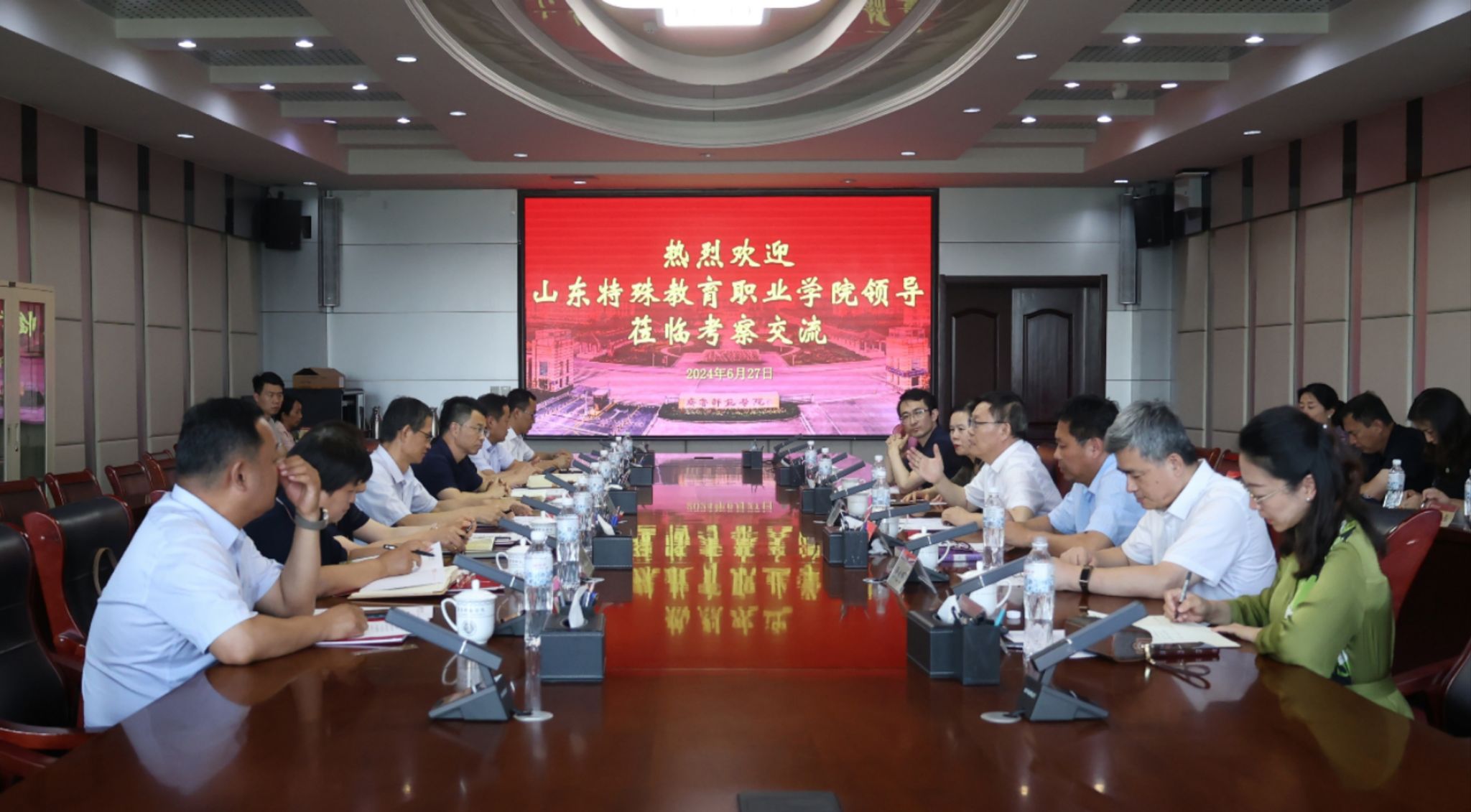 6月27日下午,山东特殊教育职业学院党委书记杨磊,党委副书记、院长李心沁等一行9人来校考察交流。学校党委书记林松柏,党委副书记、校长郑秀文,党委副书记赵敏,副校长张兆明,党委委员、副校长孙正,党委委员、宣传部部长孙磊热情接待来访。双方就加强学校合作和业务交流举行座谈。座谈会由郑秀文主持。