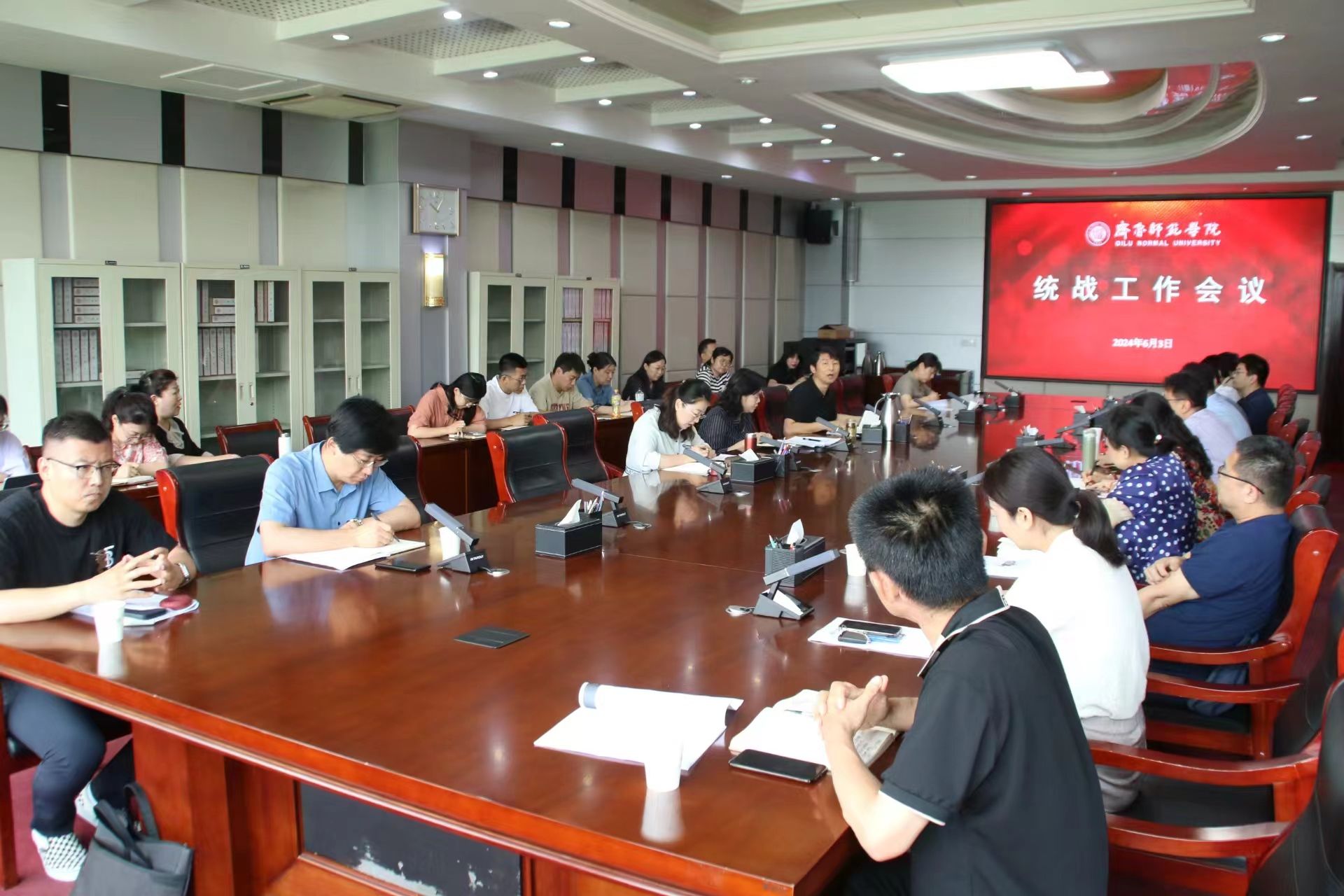 6月3日上午,齐鲁师范学院统战工作会议在章丘校区第一会议室召开。学校党委副书记赵敏主持会议并讲话。学校相关部门负责人,二级学院党委书记、统战委员、团总支书记参加会议。