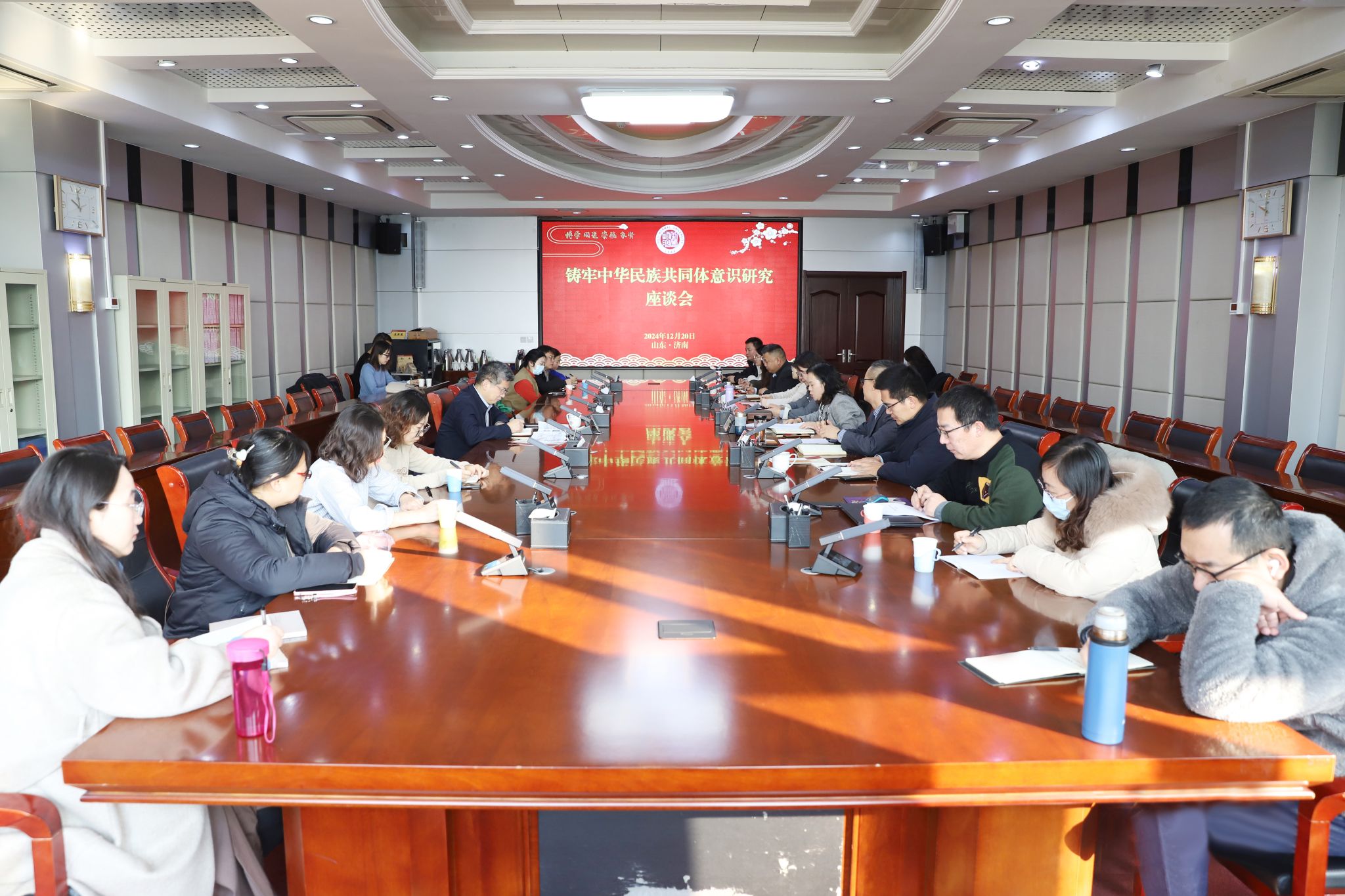 12月20日上午,学校召开铸牢中华民族共同体意识研究座谈会,山东省民族宗教委政策法规处处长徐中林受邀出席,学校党委副书记赵敏,党委委员、副校长孙洪兆,党委委员、宣传部部长孙磊,马克思主义学院院长赵立峰及相关骨干教师,科研处、党委统战部工作人员参加了会议。会议由赵敏主持。