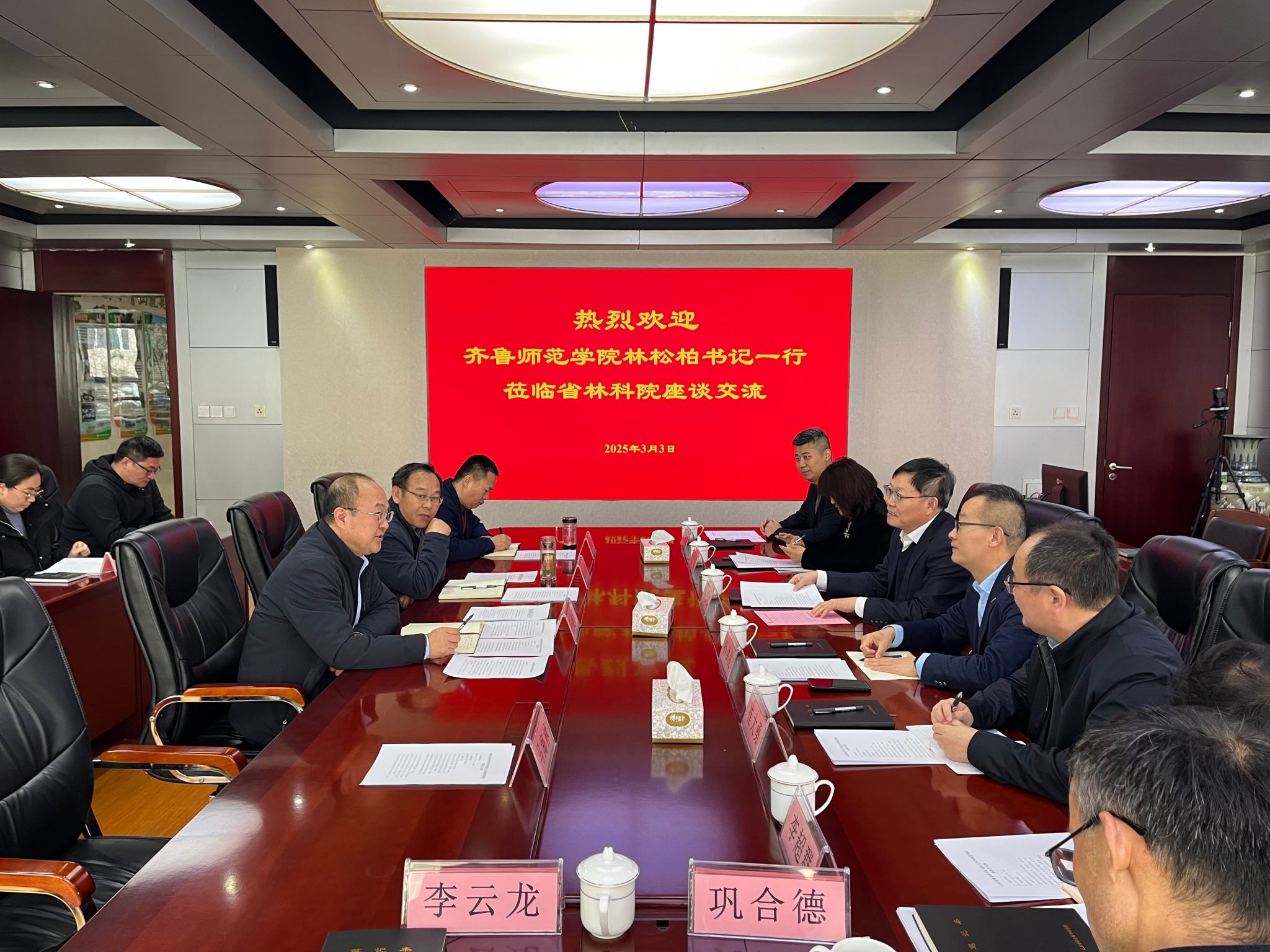 于连家首先对林松柏一行的到访表示热烈欢迎,介绍了山东省林业科学研究院发展历程、学科团队和科研成果等方面的情况。