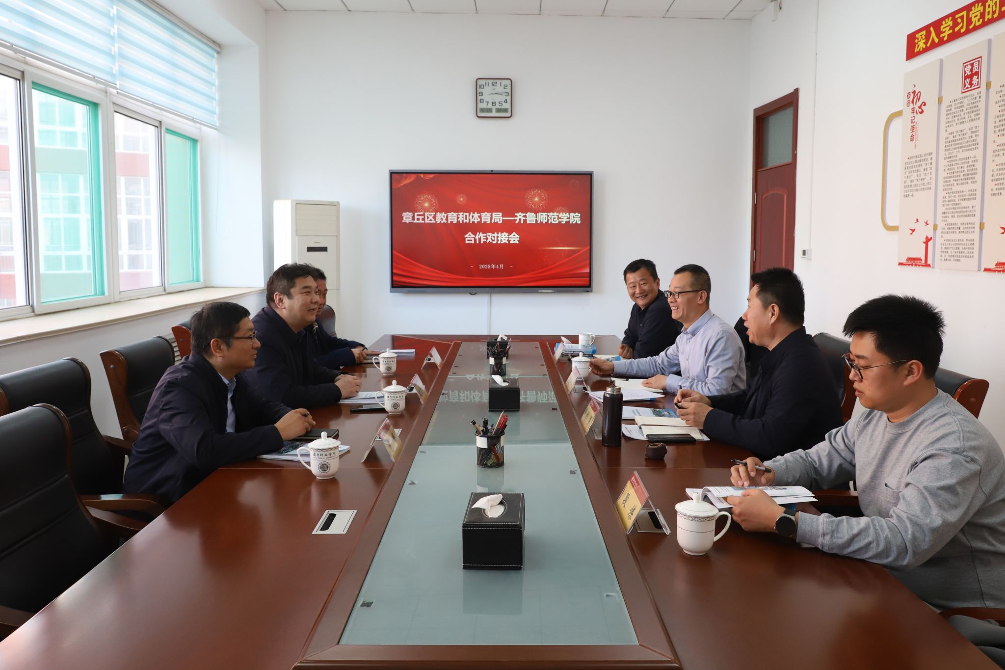 4月1日,章丘区教育和体育局党组成员、副局长魏俊宝一行到校对接合作。学校党委委员、副校长孙洪兆接待来访并举行座谈交流。学校合作发展办公室主任刘勇、基础教育服务中心主任孙卫国及相关工作人员参加会议。
