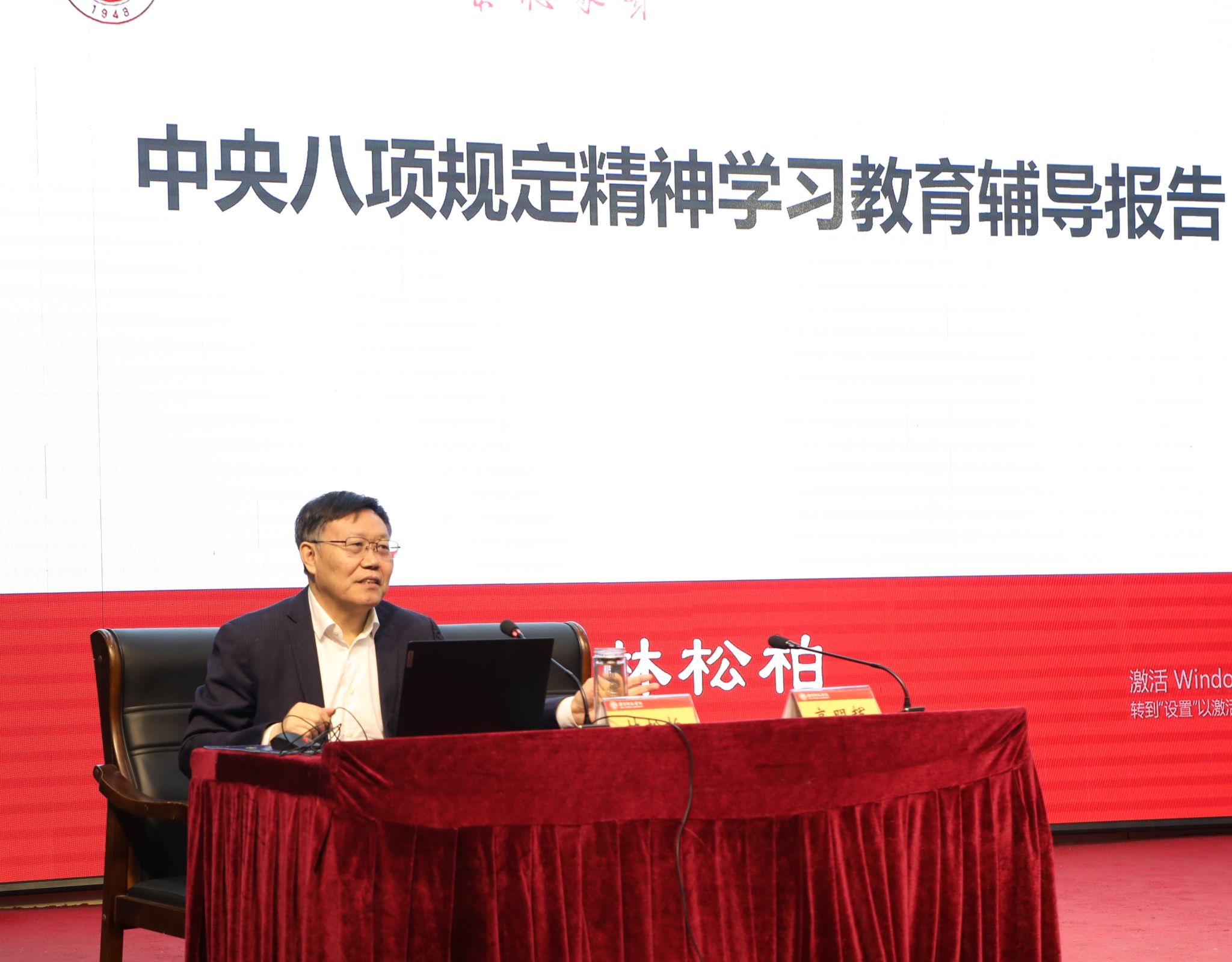 林松柏在辅导报告中详细论述了开展深入贯彻中央八项规定精神学习教育的重要意义,阐明了中央八项规定精神的内涵要义与实践要求,明确了落实中央八项规定精神应该做什么。他强调,要通过剖析当前的反腐败斗争形势和具体案例,深入推进风腐同查同治,不折不扣贯彻落实中央八项规定及其实施细则精神,始终把中央八项规定作为长期有效的铁规矩、硬杠杠。要深刻领悟开展深入贯彻中央八项规定精神学习教育是巩固深化教育成果、纵深推进全面从严治党的重要举措,是密切党群干群关系、巩固党的执政基础的必然要求,是推进中国式现代化的有力保障。要加强作风建设,把握“四风”问题的突出特点和作风建设的规律性,不断推动中央八项规定精神入脑入心。要坚持以上率下,以“关键少数”带动“绝大多数”,层层带动,一体推进学查改。