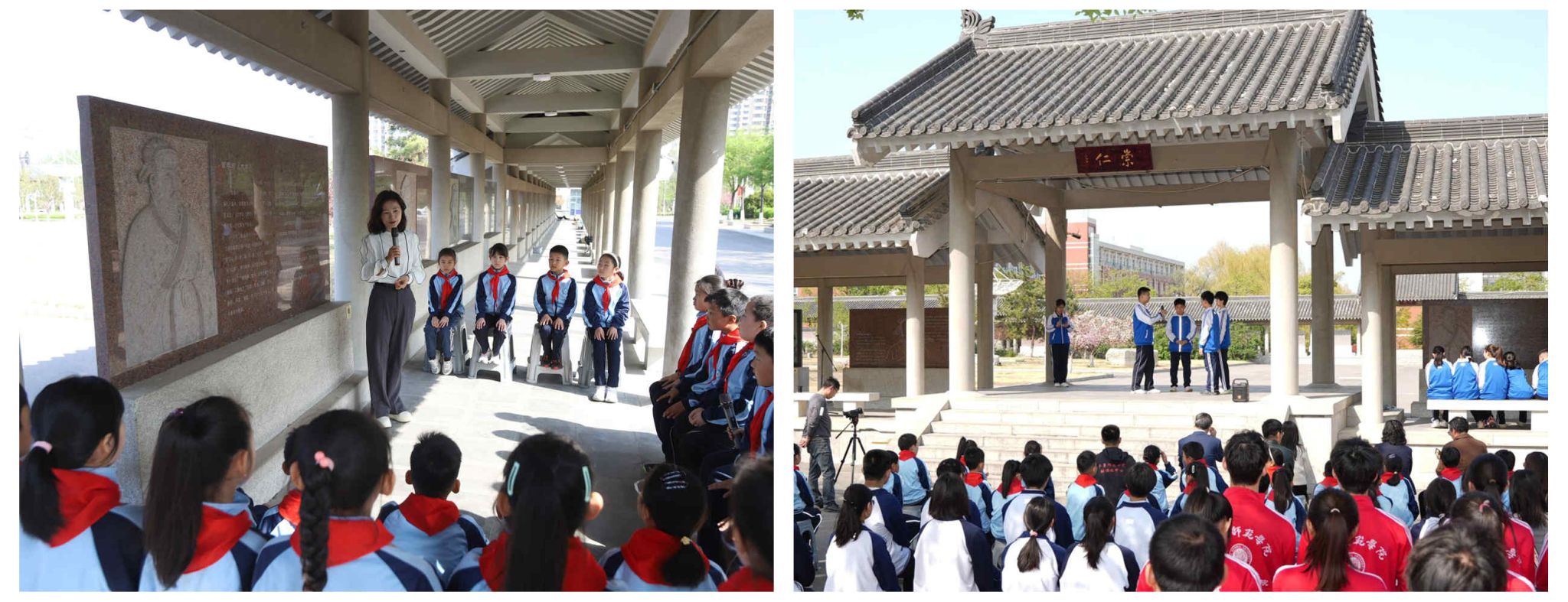 在齐鲁文化长廊曾子碑刻前,小学段和初中段的现场教学率先展开。章丘区东山小学武慧慧老师以《诚信的种子 ——从曾子杀猪说起》为题,通过“故事演绎、对话古人”等环节让学生们初步感悟“诚信就是说话算数”,引导孩子们在心中种下诚信的种子。章丘中学康宏伟老师的课《以诚立人,以行践诺:一堂穿越千年的诚信课》则以诚信生活小剧场的形式,对中华优秀传统文化进行了内容和形式的创新,将千年前的故事,通过情景剧的形式演绎得淋漓尽致,让学生在亲身体验中树立 “以诚待人、以信立身” 的价值观。