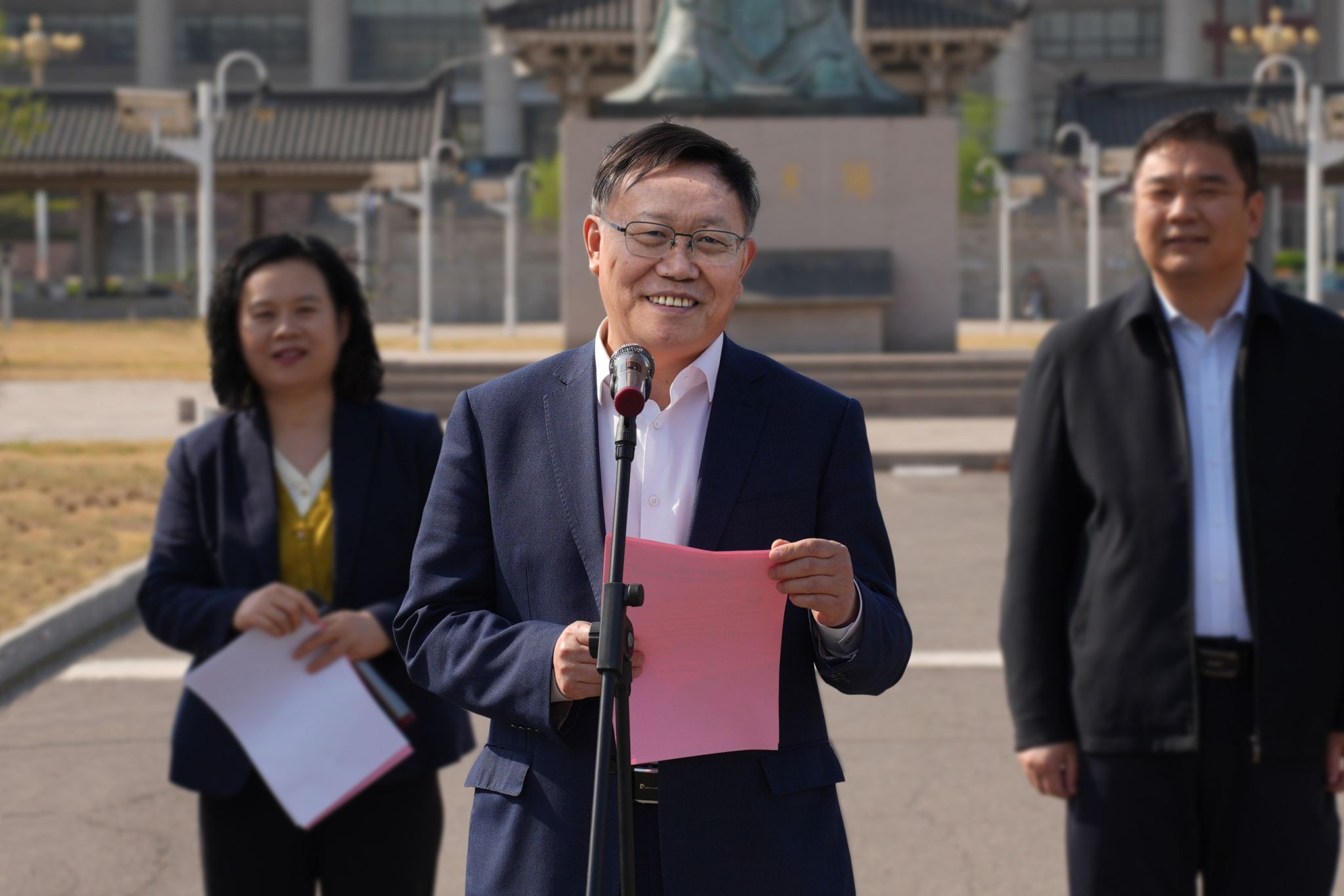 上午9点,活动在齐鲁师范学院齐鲁文化长廊孔子像前拉开帷幕。林松柏在致辞中指出,学校秉持 “努力成为站在中小学教师身边的人”的理念,长期深耕基础教育,在大中小学思政课一体化建设中探索出协同联动的新机制。他强调,此次活动既是响应《山东省大中小学思政课一体化建设实施方案》的重要实践,也是创新大中小学思政课一体化教学方法、增强育人实效的积极探索。思政课是立德树人的关键课程,不同学段的思政课应围绕 “诚信”这一核心主题,构建 “小学启蒙—初中奠基—高中强化—大学践行”的诚信教育体系,让诚信理念贯穿学生成长全过程。