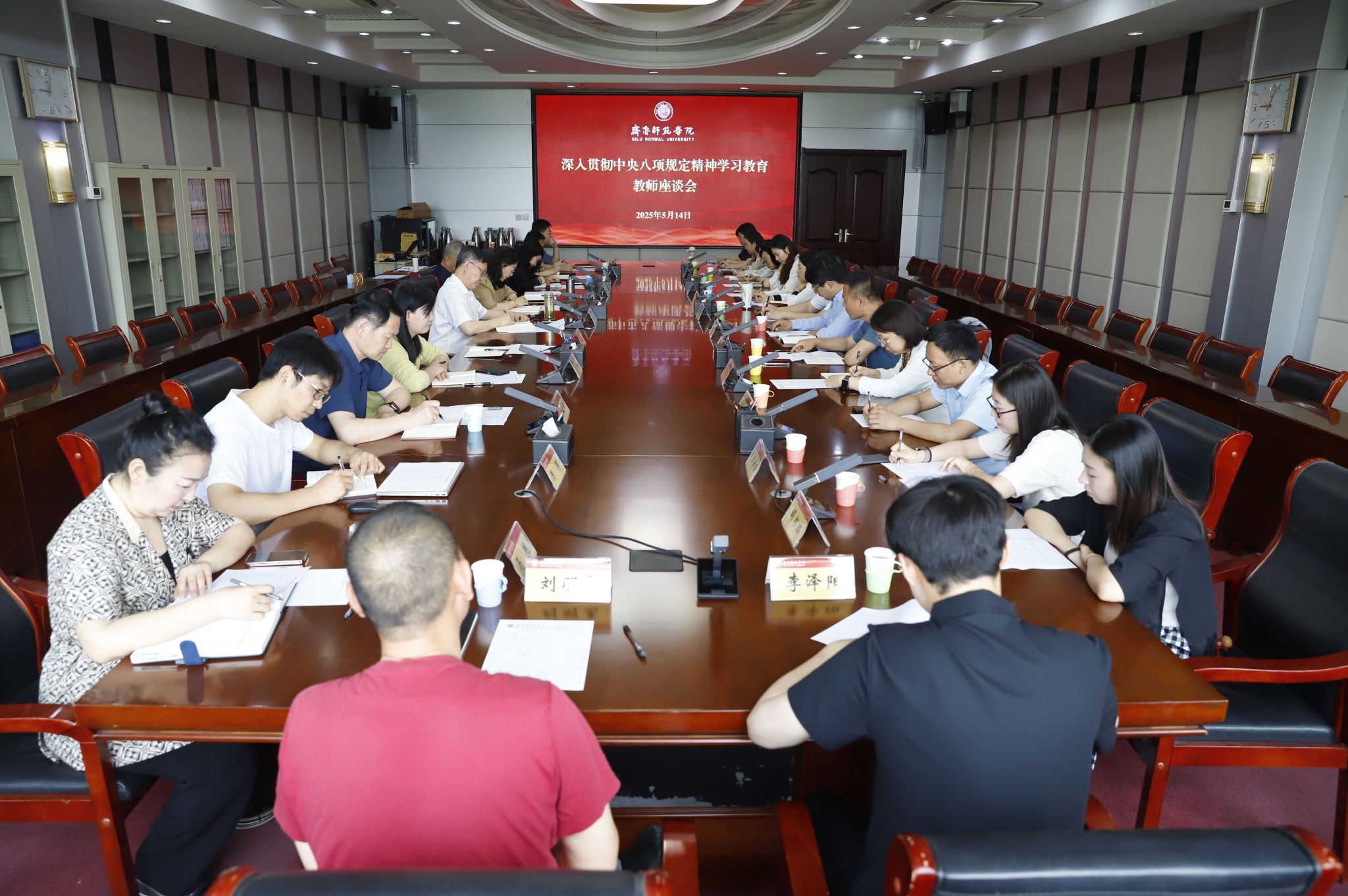 为进一步落实深入贯彻中央八项规定精神学习教育“学查改”一体推进要求,坚持开门教育,推动作风建设走深走实,5月14日上午,学校在章丘校区第一会议室召开深入贯彻中央八项规定精神学习教育教师座谈会,围绕贯彻中央八项规定及其实施细则精神以及学校高质量发展、学科专业建设、人才培养等内容,广泛听取各学院教师代表意见建议。学校党委书记林松柏主持会议并讲话。
