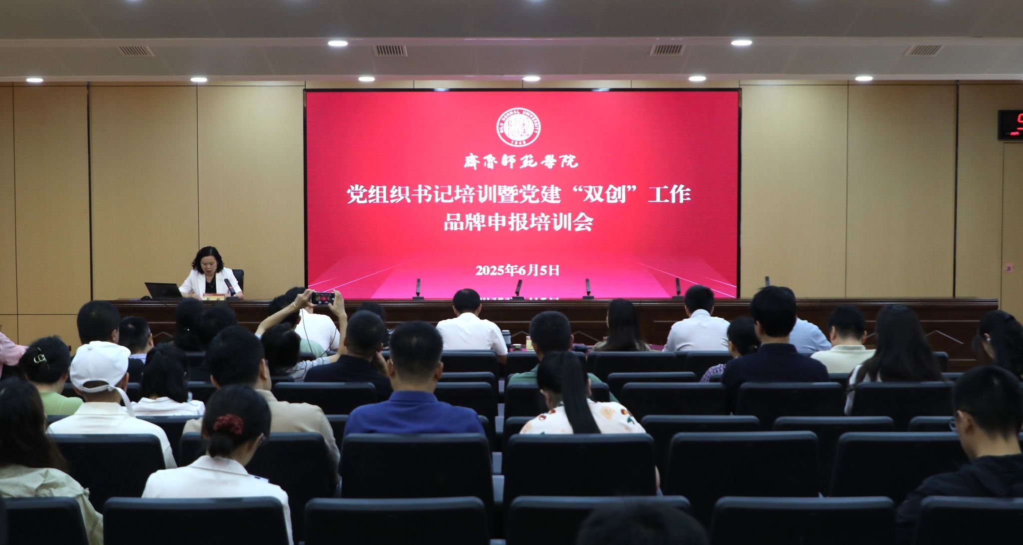 为进一步贯彻落实新时代党的建设总要求,深化推进学校党建“双创”、“双带头人”教师党支部建设工作,全面提升基层党组织工作质效,6月5日,学校在章丘校区第二学术报告厅举办党组织书记暨党建“双创”工作品牌申报培训会。学校党委副书记赵敏主持会议,党委委员、组织部部长宗美娟对相关工作作出具体安排。