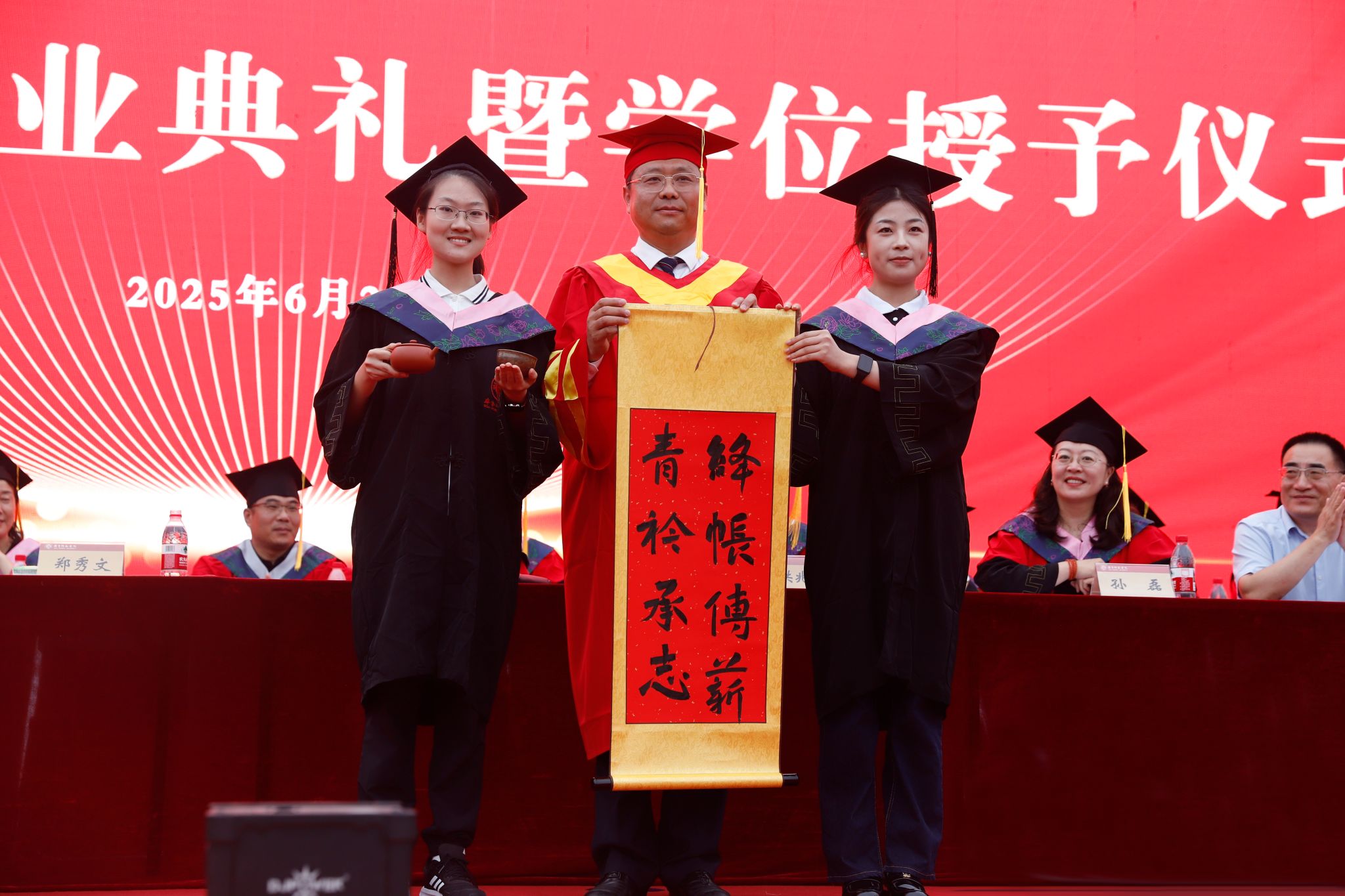 教务处处长张克玉宣读2025届普通本科毕业生学士学位和2025届成人高等教育、自学考试本科毕业生学士学位授予决定;团委书记赵旭宣读2025年大学生志愿服务西部计划优秀志愿者名单。郑秀文、赵敏、孙正、孙洪兆、宋新刚、孙磊、宗美娟、张宪福共同为2025年大学生志愿服务西部计划优秀志愿者颁发荣誉证书。
