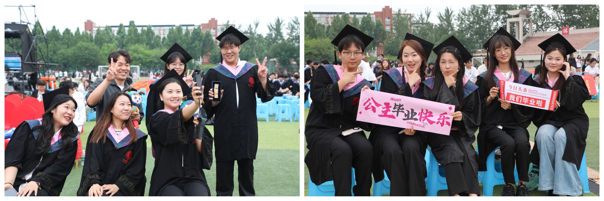 拨穗正冠承荣耀,星辰大海启新篇。学位授予仪式上,郑秀文为毕业生代表逐一拨穗正冠、授予学位证书。毕业生依次鞠躬致谢,合影留念,将这一庄严时刻定格为永恒记忆。流苏飞扬间,全场沸腾,如潮的掌声在宽阔的体育场上空澎湃激荡,经久不息。