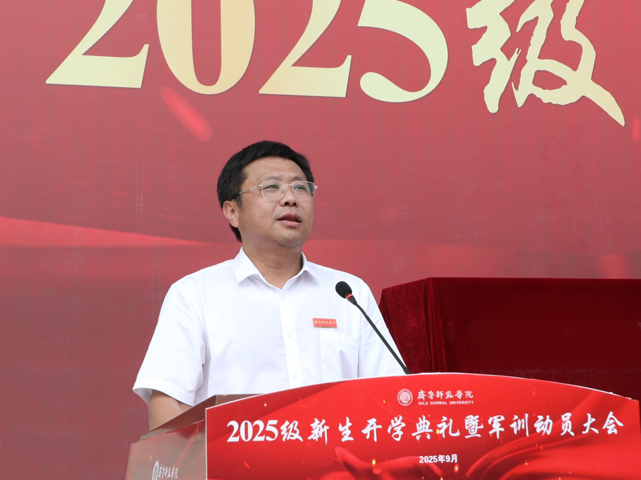 9月16日上午,齐鲁师范学院2025级新生开学典礼暨军训动员大会在章丘校区体育场隆重举行。学校党委副书记、校长郑秀文,党委副书记赵敏,副校长张兆明,党委委员、副校长孙洪兆,党委委员、统战部部长宋新刚,党委委员、宣传部部长孙磊,党委委员、组织部部长宗美娟,以及承训部队官兵代表出席典礼。典礼由赵敏主持。