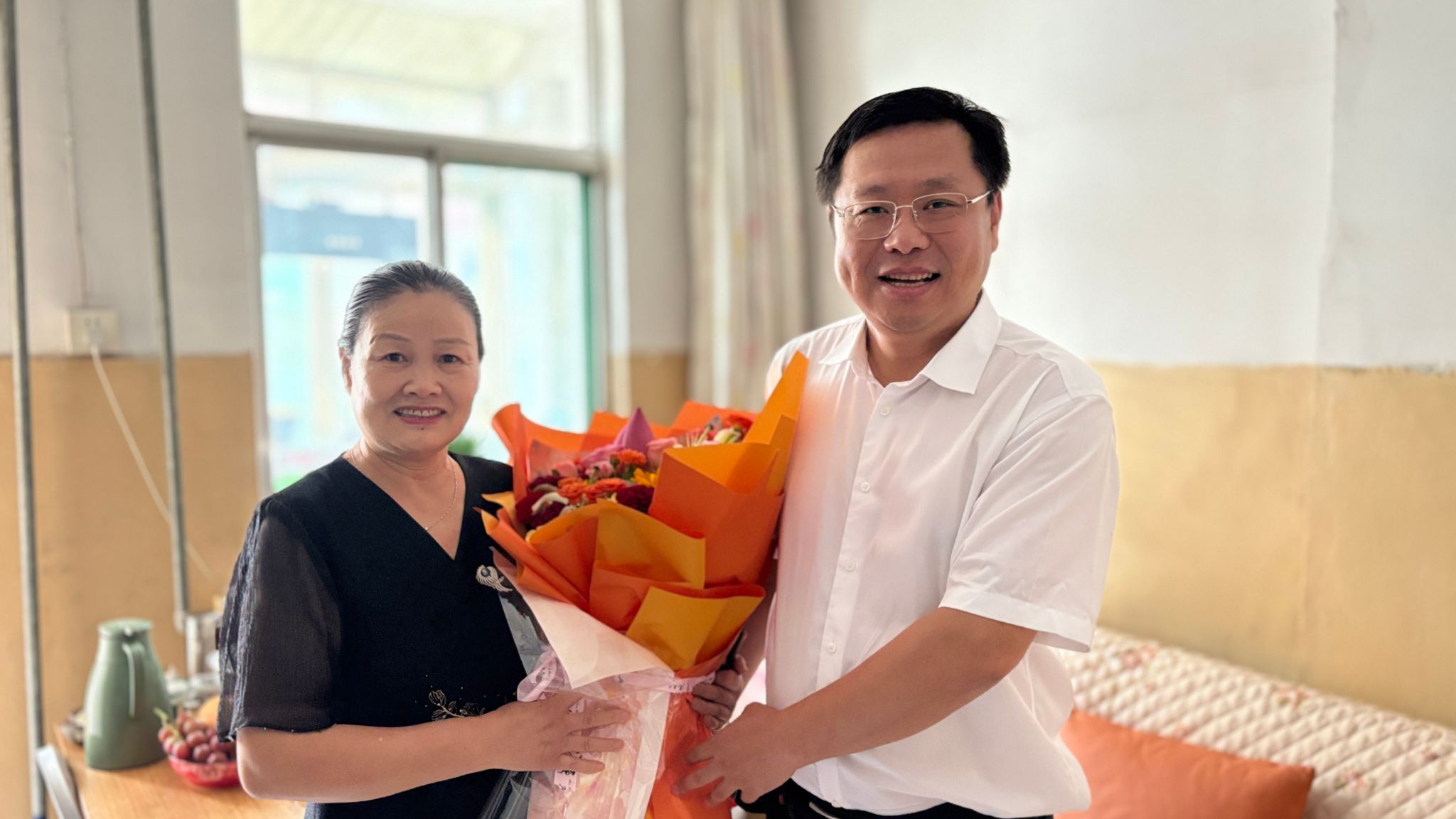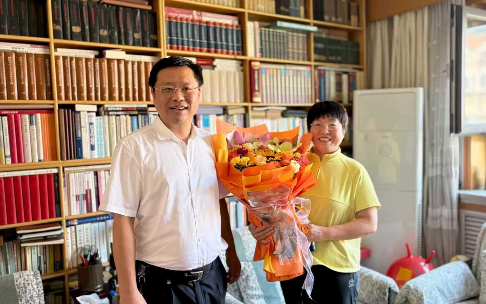 在第41个教师节即将来临之际,为传承尊师重教传统,传递学校对离退休教师的深切关怀,9月7-8日,学校党委副书记、校长郑秀文,党委副书记赵敏带着全校师生的诚挚祝福,先后走进多位离退休教师代表家中,与老教师们促膝长谈,共话学校发展,向他们致以节日的美好祝愿。离退休工作处负责同志陪同参加走访。
