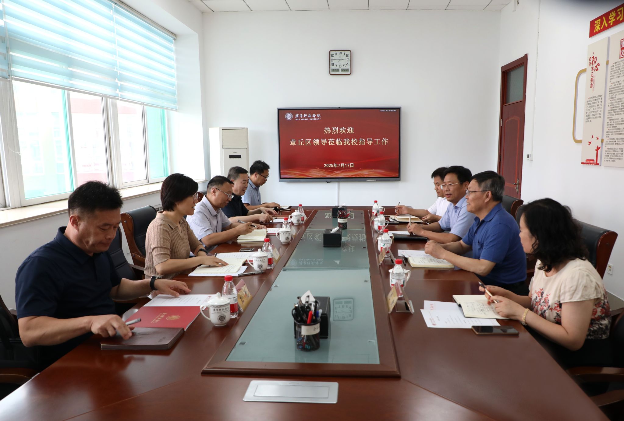 7月17日上午,章丘区委常委、副区长许芳一行到校调研,围绕校地融合发展进行座谈交流。学校党委书记林松柏,党委副书记、校长郑秀文,党委副书记赵敏出席座谈会,会议由林松柏主持。