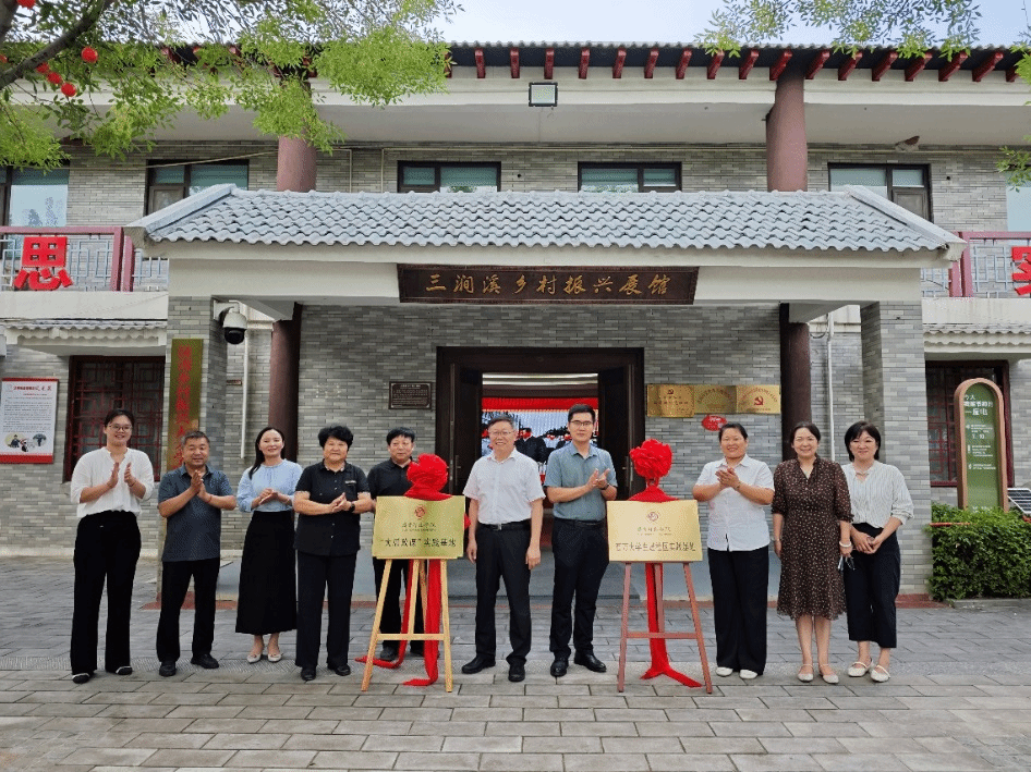 林松柏、高淑贞等共同为齐鲁师范学院“大思政课”实践基地、百万大学生进社区实践活动基地揭牌,学校与三涧溪村的合作迈入新阶段。