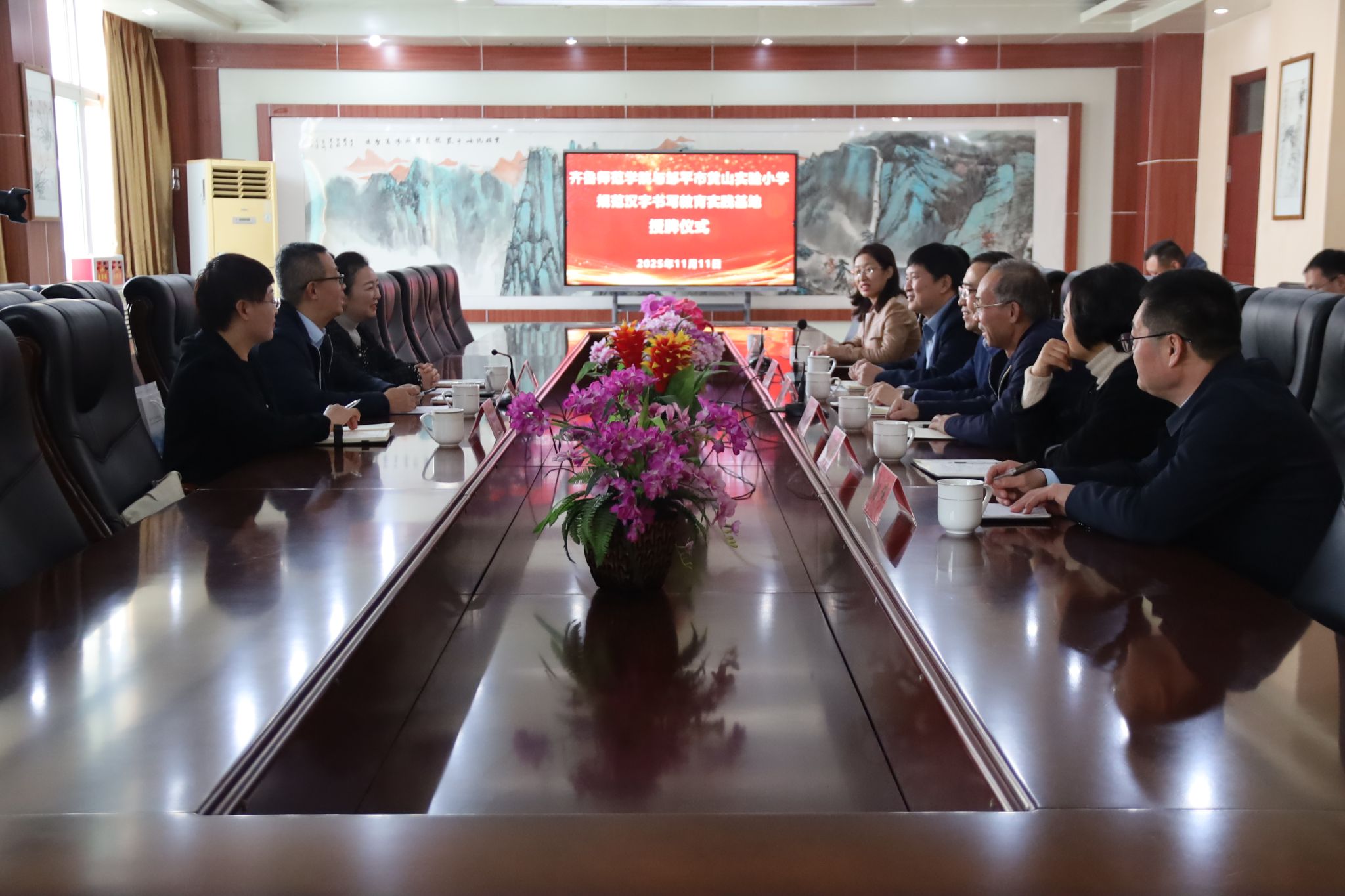 11月11日上午,齐鲁师范学院党委委员、副校长孙洪兆一行赴邹平市黄山实验小学,与邹平市教育和体育局、黄山实验小学共建“国家语言文字推广基地(齐鲁师范学院)规范汉字书写教育实践基地”。国家语言文字推广基地(齐鲁师范学院)办公室主任马艳,邹平市教育和体育局党组书记、局长宋明科及黄山实验小学教育集团成员校主要负责人参加活动。